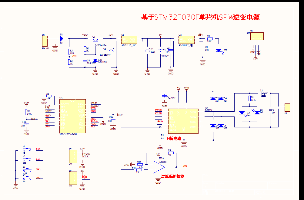 关键词:逆变电源 软硬件设计 SPWM调制 STM32