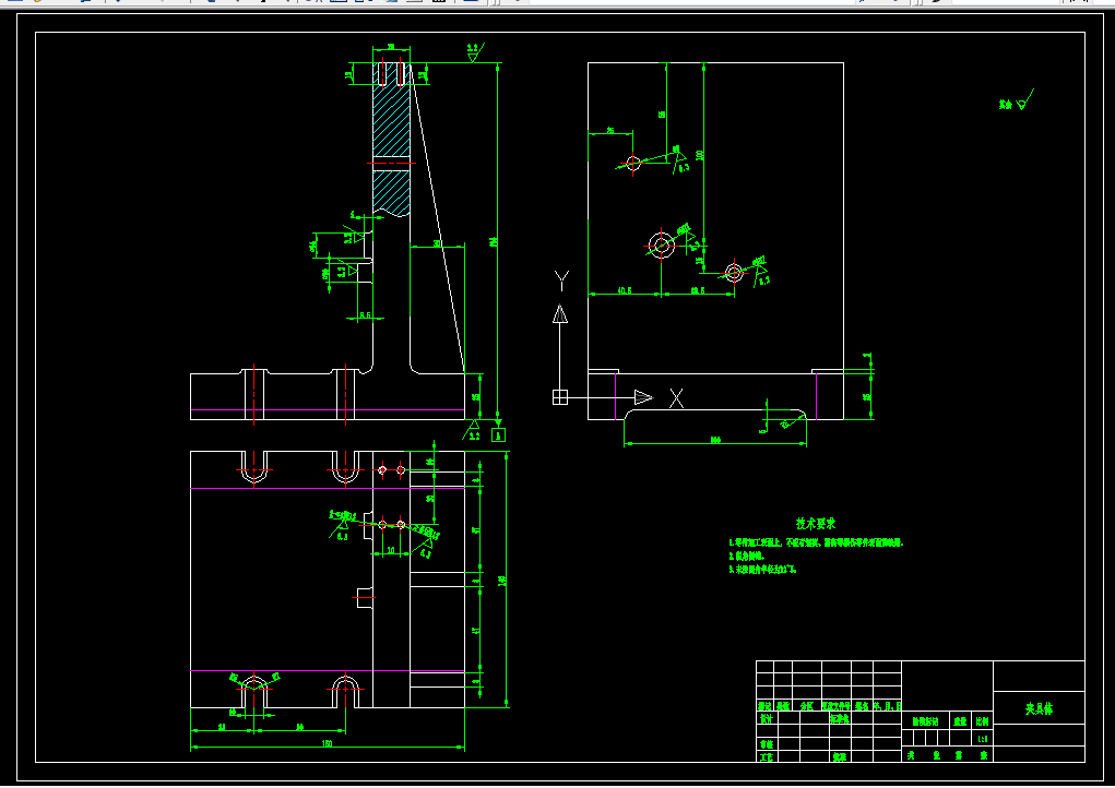 付变速拨叉零件的机械加工工艺规程制订及专用机床夹具设计是包括零件加工的工艺设计、工序设计以及专用夹具的设计三部分。在工艺设计中要首先对零件进行分析,了解零件的工艺再设计出毛坯的结构,并选择好零件的加工基准,设计出零件的工艺路线;接着对零件各个工步的工序进行尺寸计算,关键是决定出各个工序的工艺装备及切削用量;然后进行专用夹具的设计,选择设计出夹具的各个组成部件,如定位元件、夹紧元件、引导元件、夹具体与机床的连接部件以及其它部件;计算出夹具定位时产生的定位误差,分析夹具结构的合理性与不足之处,并在以后设计中注意改进。