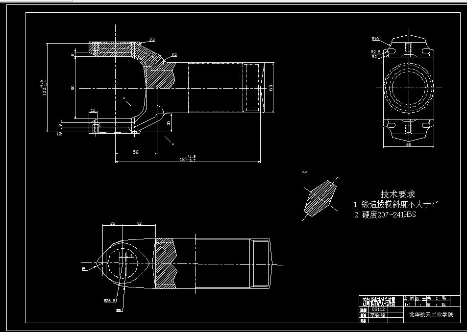 万向节滑动叉位于传动轴的端部。它的主要作用:一是传递扭矩,使汽车获得前进的动力;二是当汽车后桥钢板弹簧处在不同的状态时,由本零件可以调整传动轴的长短及其位置。零件的两个叉头部位上有两个孔,用以安装滚针轴承并与十字轴相连,起万向联轴节的作用。零件上的花键孔与传动轴端部的花键轴相配合,用于传递动力之用。