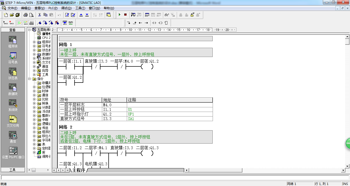 b) 电梯停在某一层时,此时按动该层的呼叫按钮(上呼叫或下呼叫),则相当于发出打开电梯门命令,进行开门的动作过程;若此时电梯的轿箱不在该层,则等到电梯关门后,按照不换向原则控制电梯向上或向下运行。
