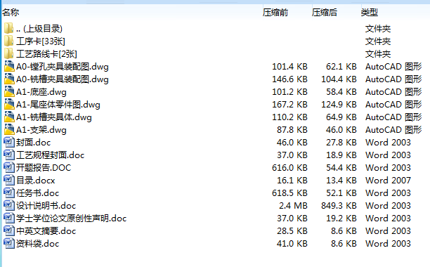 工艺卡片一套