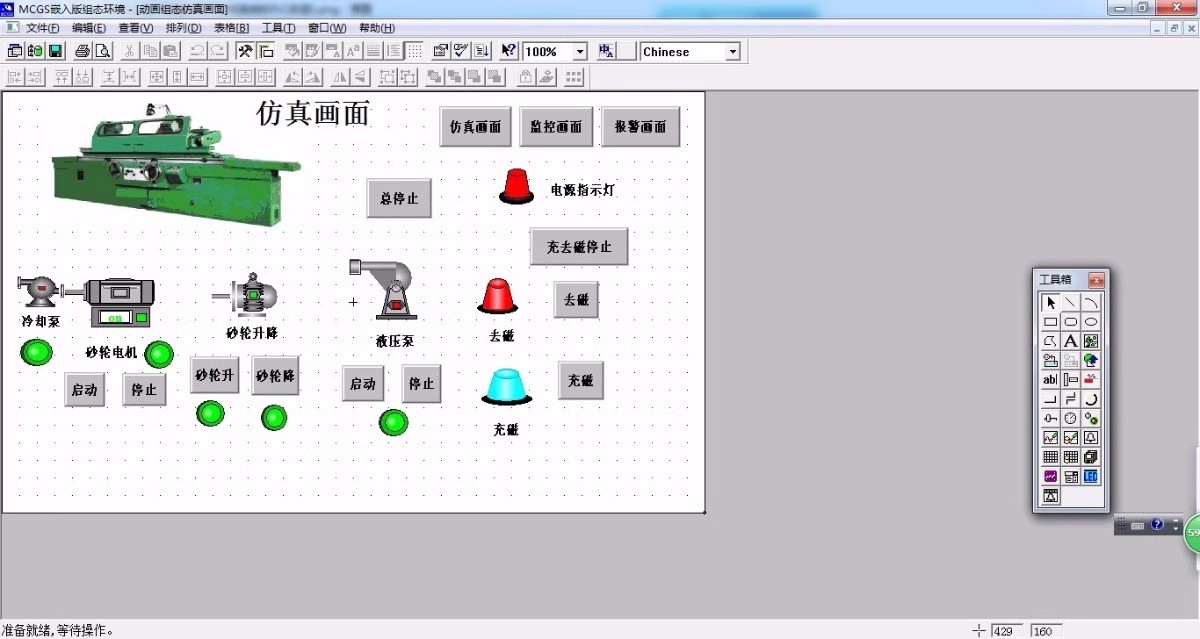 本系统设计的M7120平面磨床,在工件加工的过程中,主磨头的砂轮通过高速旋转进行磨削,属于磨床的主运动;对于工作台的往复运动,主要依靠液压站的换向电磁阀或者横向顶给机构以及纵向进给机构实现往复动作。在工作时,当砂轮旋转的时候,工作台开始左右移动,并且前后移动,左右移动时,工件来回磨削,前后移动时,工件改变磨削的位置。这样不断的重复着位置和运动。直到整个工件磨削,达到工艺的要求。
