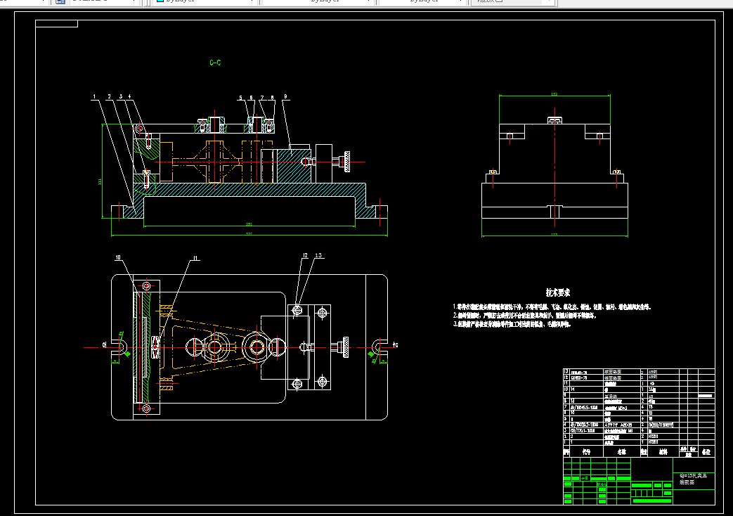 圆周支座零件加工工艺及夹具设计是包括零件加工的工艺设计、工序设计以及专用夹具的设计三部分。在工艺设计中要首先对零件进行分析,了解零件的工艺再设计出毛坯的结构,并选择好零件的加工基准,设计出零件的工艺路线;接着对零件各个工步的工序进行尺寸计算,关键是决定出各个工序的工艺装备及切削用量;然后进行专用夹具的设计,选择设计出夹具的各个组成部件,如定位元件、夹紧元件、引导元件、夹具体与机床的连接部件以及其它部件;计算出夹具定位时产生的定位误差,分析夹具结构的合理性与不足之处,并在以后设计中注意改进。