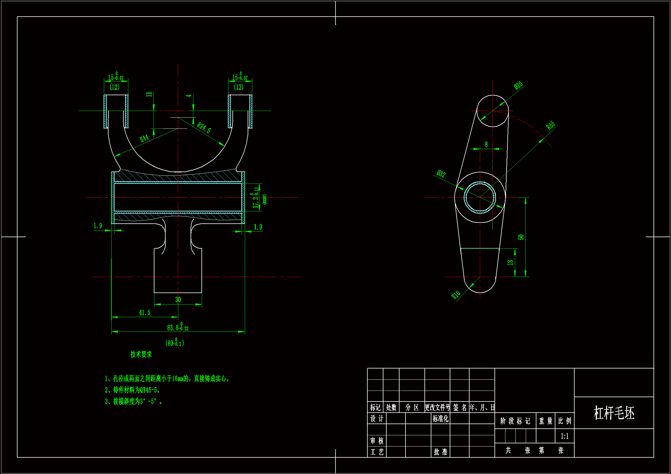杠杆加工工艺规程及其夹具设计是包括零件加工的工艺设计、工序设计以及专用夹具的设计三部分。在工艺设计中要首先对零件进行分析,了解零件的工艺再设计出毛坯的结构,并选择好零件的加工基准,设计出零件的工艺路线;接着对零件各个工步的工序进行尺寸计算,关键是决定出各个工序的工艺装备及切削用量;然后进行专用夹具的设计,选择设计出夹具的各个组成部件,如定位元件、夹紧元件、引导元件、夹具体与机床的连接部件以及其它部件;计算出夹具定位时产生的定位误差,分析夹具结构的合理性与不足之处,并在以后设计中注意改进。