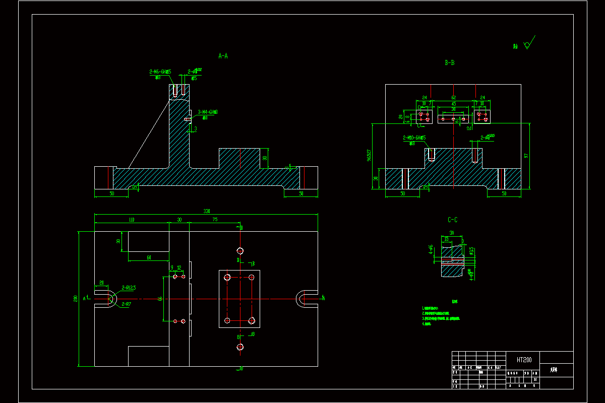 轴支架零件的工艺规程及其钻2-Ф12孔的工装夹具设计是包括零件加工的工艺设计、工序设计以及专用夹具的设计三部分。在工艺设计中要首先对零件进行分析,了解零件的工艺再设计出毛坯的结构,并选择好零件的加工基准,设计出零件的工艺路线;接着对零件各个工步的工序进行尺寸计算,关键是决定出各个工序的工艺装备及切削用量;然后进行专用夹具的设计,选择设计出夹具的各个组成部件,如定位元件、夹紧元件、引导元件、夹具体与机床的连接部件以及其它部件;计算出夹具定位时产生的定位误差,分析夹具结构的合理性与不足之处,并在以后设计中注意改进。