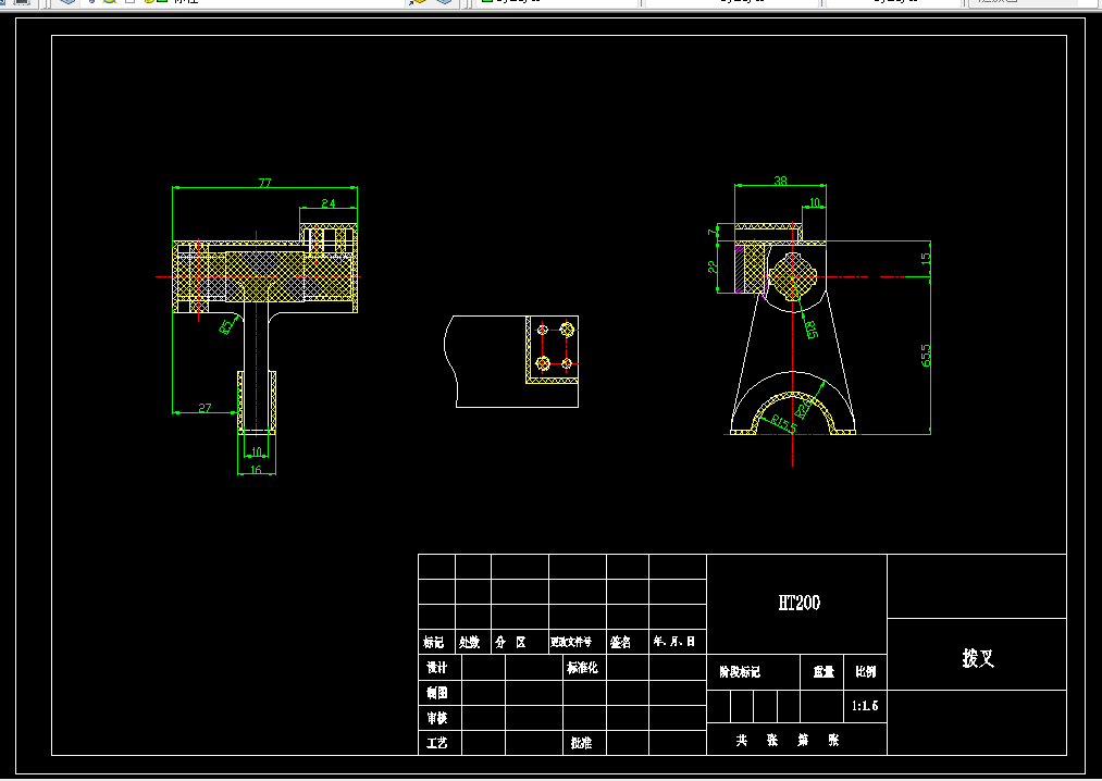 专用夹具是通用夹具、组合夹具以及随行夹具中的一种。专用夹具因零件外形奇特,变的不能或缺。专用夹具在现在的生产和设计中,其地位非常之重要,因而,对其进行研究非常有意义。本次设计的零件是拨叉,拨叉是汽车变速箱上的部件,与变速手柄相连,位于手柄下端,拨动中间变速轮,使输入/输出转速比改变。拨叉主要是用在操纵机构中,比如改变车床滑移齿轮的位置,实现变速;或者应用于控制离合器的啮合断开的机构中,从而控制横向或纵向进给。设计内容包括机械加工工艺和专用夹具设计。加工工艺设计包括零件的工艺分析,材料的选择,生产批量的确定,加工工艺路线及工序卡的设计等。本次专用夹具设计铣73右端面,设计内容包括定位、夹紧元件及方案,夹具体,对刀装置等。