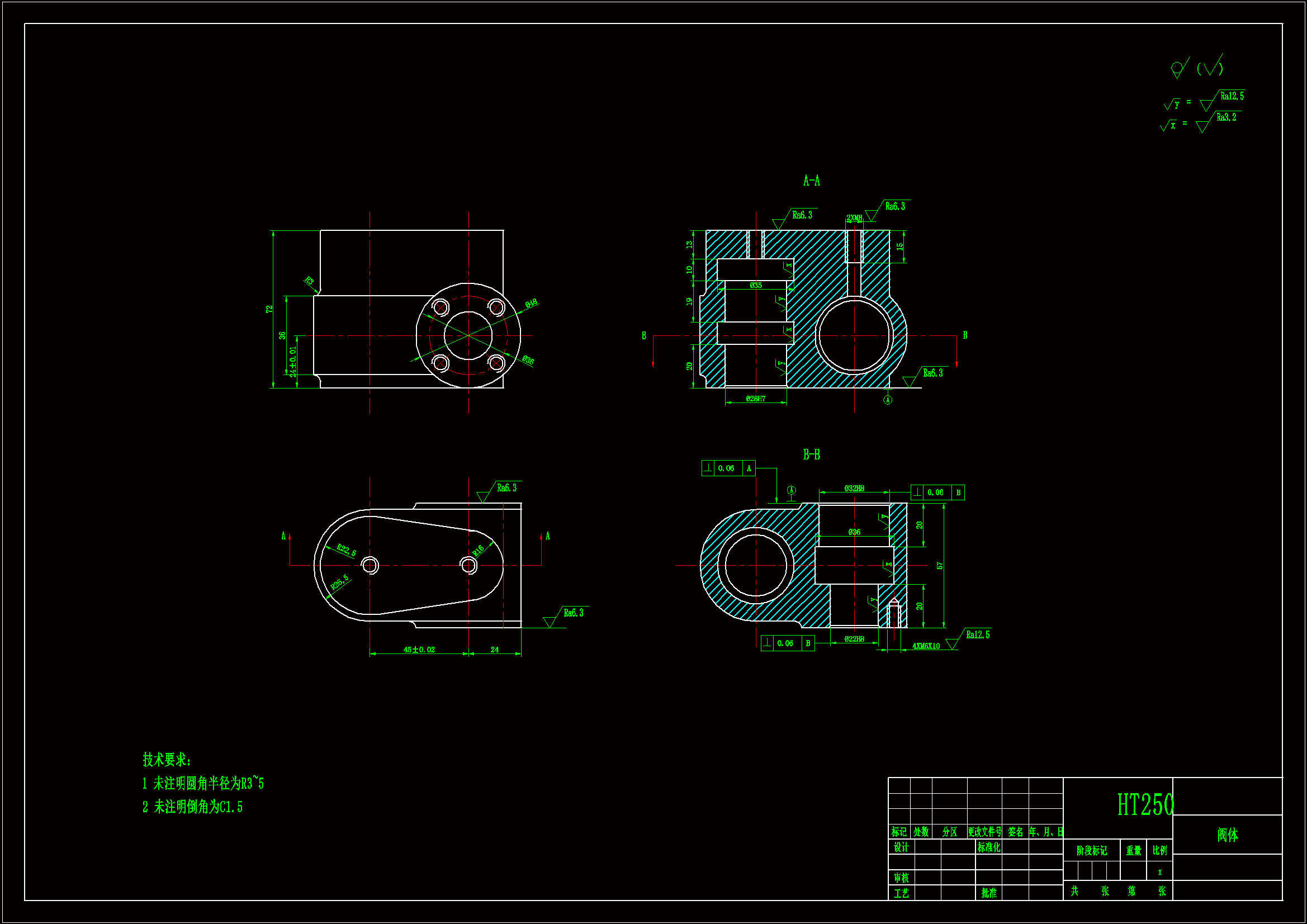 阀体加工工艺规程及钻孔的夹具设计是包括零件加工的工艺设计、工序设计以及专用夹具的设计三部分。在工艺设计中要首先对零件进行分析,了解零件的工艺再设计出毛坯的结构,并选择好零件的加工基准,设计出零件的工艺路线;接着对零件各个工步的工序进行尺寸计算,关键是决定出各个工序的工艺装备及切削用量;然后进行专用夹具的设计,选择设计出夹具的各个组成部件,如定位元件、夹紧元件、引导元件、夹具体与机床的连接部件以及其它部件;计算出夹具定位时产生的定位误差,分析夹具结构的合理性与不足之处,并在以后设计中注意改进。