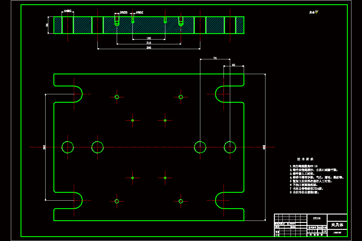 本次毕业设计是有关变速箱体零件的加工工艺设计和相关工序的夹具设计。箱体起着支承和固定轴系零件、保证轴系运转精度、储存润滑油及可靠密封等重要作用。箱体及其附件的设计都采用经验性设计。本次变速箱体零件主要需要加工表面是平面和孔系。因为平面加工精度相对于孔系的加工精度更容易保证,所以本次设计遵循先面后孔的加工原则。为了保证加工精度要求,要对需加工的面和孔进行粗加工和精加工。对于基准的选择我是以变速箱体的输入输出轴的支承孔作为粗基准,以输出轴的支承孔旁边得两个工艺孔作为精基准。加工工序的选择我是以支承孔系的轴作为粗基准先加工出上表面,再以顶平面和精基准(就是两个工艺孔)加工出孔。加工所用机床都为组合机床,夹具选用专用夹具(本次设计以铣床夹具和镗床夹具为例)夹紧。加紧方式选用手动夹紧,夹紧可靠。