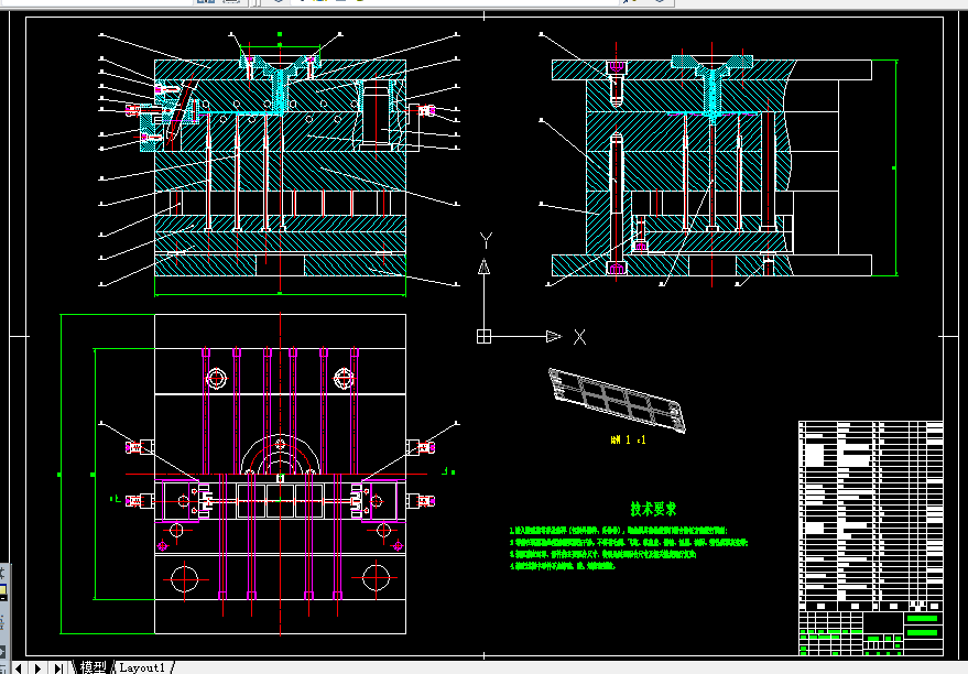 设计方案是可行的,然后对整套模具进行了全面的设计,最后对注射机的有关参数进行了校核,各个参数均能满足要求