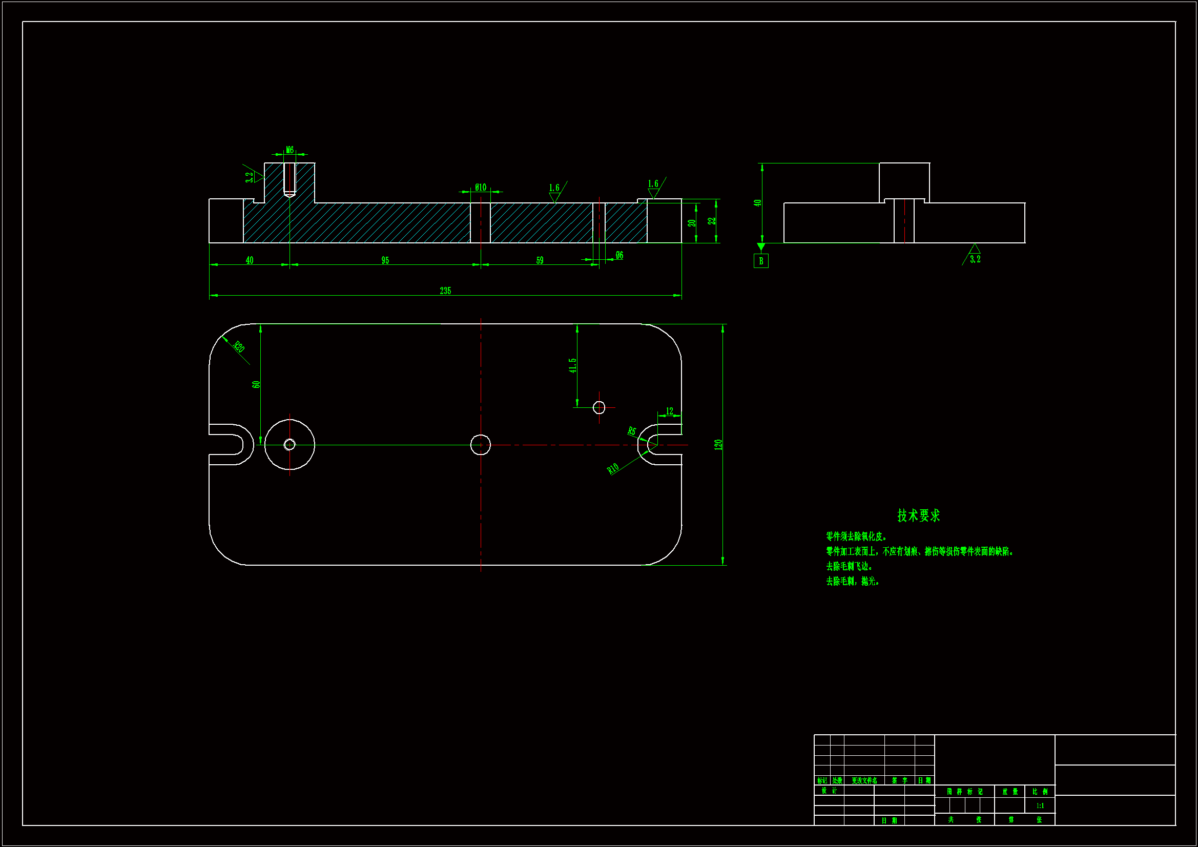 该设计进行前根据零件图纸上的待加工孔的技术要求,根据所学的夹具设计的基本知识、设计方法,根据零件拟定适合的夹具;在保证两个孔加工尺寸和位置精度的前提下,正确的装夹、定位、锁紧;针对工件在装夹时需要定位准确、操作便捷,结构设计在保证夹具功能同时,也要考虑夹具零部件间相对运动操作要方便快捷。