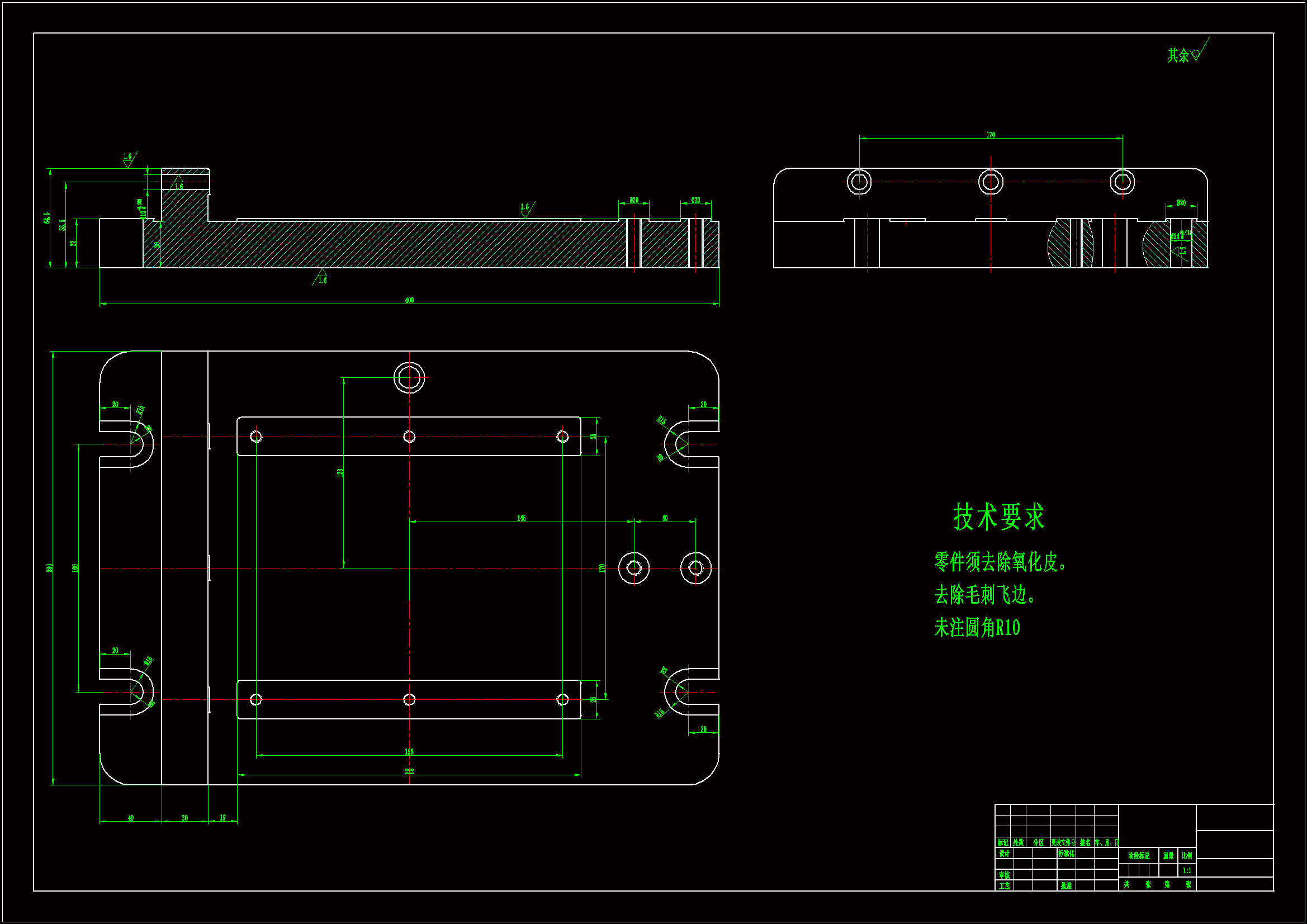 底座加工工艺规程及铣孔的夹具设计是包括零件加工的工艺设计、工序设计以及专用夹具的设计三部分。在工艺设计中要首先对零件进行分析,了解零件的工艺再设计出毛坯的结构,并选择好零件的加工基准,设计出零件的工艺路线;接着对零件各个工步的工序进行尺寸计算,关键是决定出各个工序的工艺装备及切削用量;然后进行专用夹具的设计,选择设计出夹具的各个组成部件,如定位元件、夹紧元件、引导元件、夹具体与机床的连接部件以及其它部件;计算出夹具定位时产生的定位误差,分析夹具结构的合理性与不足之处,并在以后设计中注意改进。