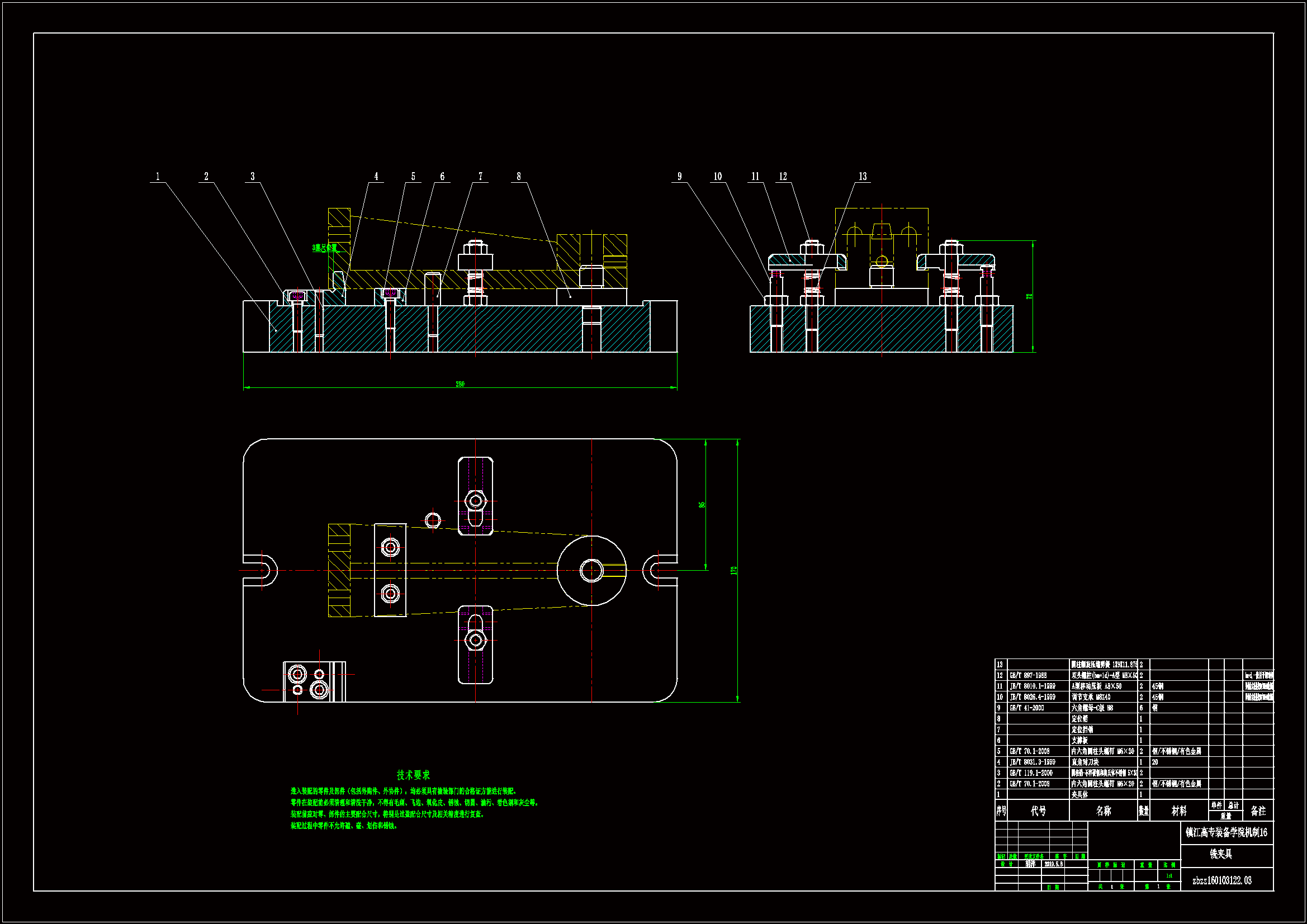 的工艺流程后,制定工艺过程卡和工序卡,并进行每个工序的加工参数的计算。然后选择其中的两个主要的工序作为本次的工装夹具的设计任务,从零件的定位、夹紧来开始分析,确定好夹具的基本方案,绘制夹具的装配图和夹具的零件图,并进行切削力和夹紧力的计算等,最后完成设计说明书。