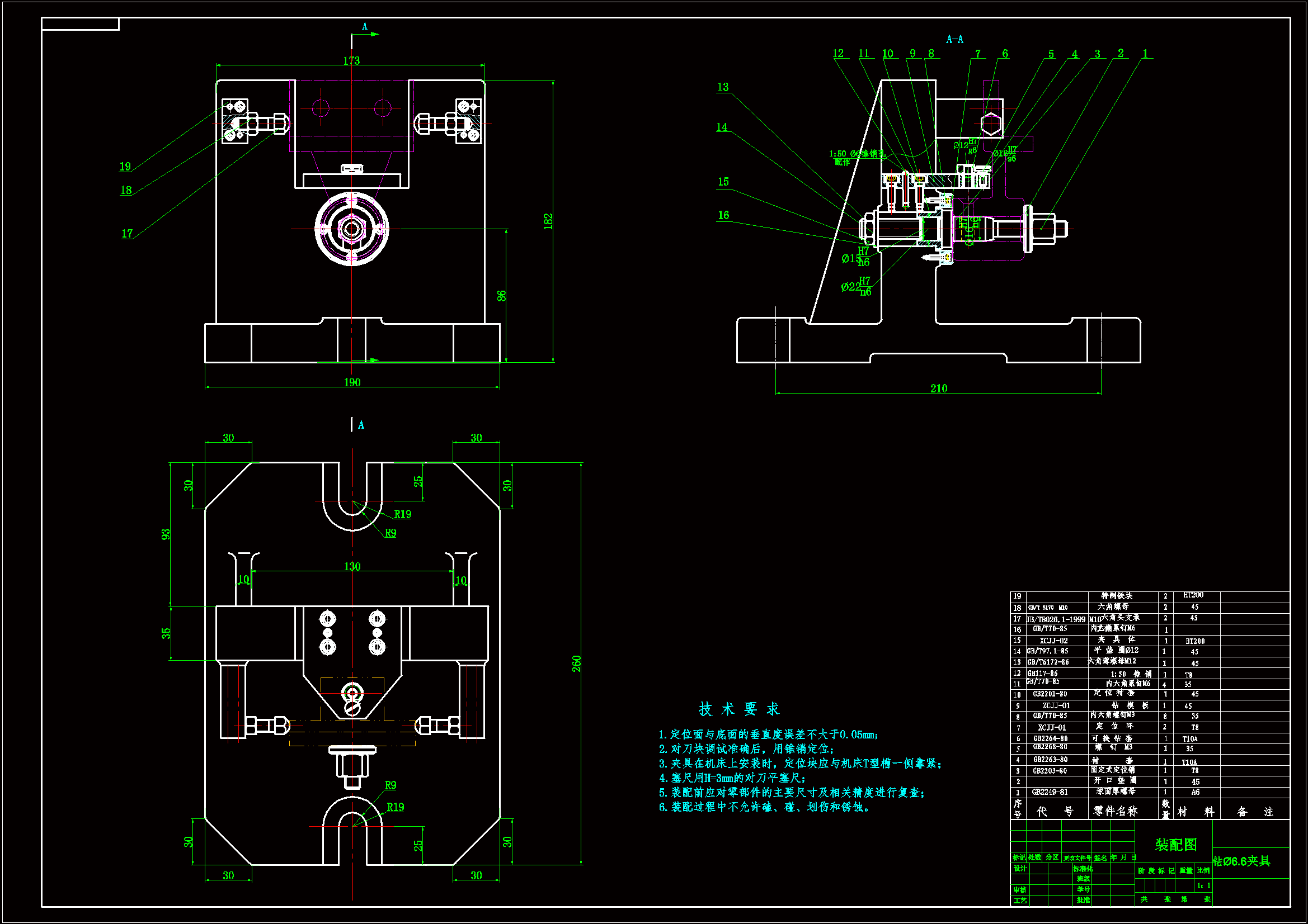 本设计轴承架零件加工过程的基础设计的钻孔夹具设计。主要加工部位是平面和孔加工。在一般情况下,确保比保证精密加工孔很容易。因此,设计遵循的原则是先加工面后加工孔表面。在零件的夹具设计中,主要是根据零件加工工序要求,分析应限的自由度数,进而根据零件的表面特征选定定位元件,再分析所选定位元件能否限定应限自由度。确定了定位元件后还需要选择夹紧元件,最后就是确定专用夹具的结构形式。