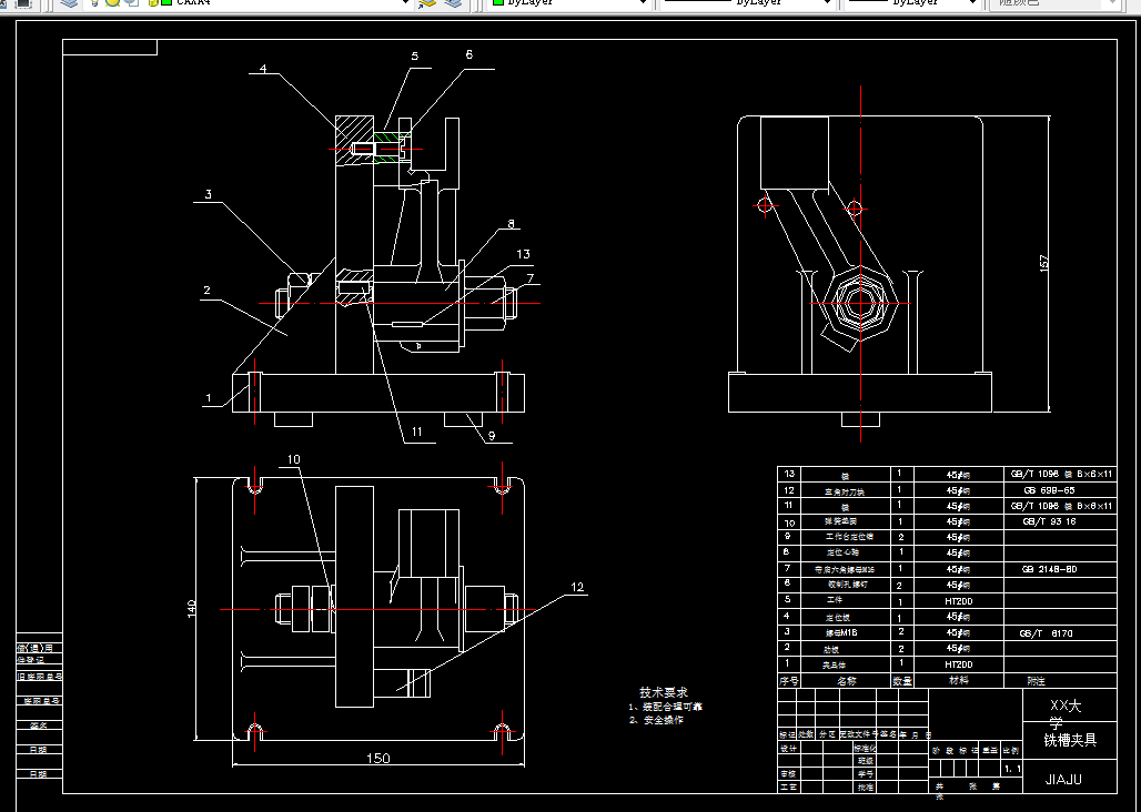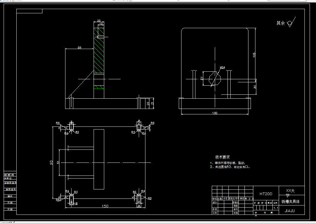 此次设计是对拨叉零件的加工工艺和夹具设计,其零件为铸件,具有体积小,零件复杂的特点,由于面比孔易加工,在制定工艺规程时,就先加工面,再以面为基准来加工其它,其中各工序夹具都采用专用夹具,特别的对于加工大头孔、槽和钻小头孔斜面小孔的工序中,选一面两销的定位方式,并以操作简单的手动夹紧方式夹紧,其机构设计简单,方便且能满足要求。