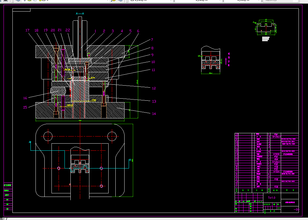 本文分析了硅钢片复合的结构、尺寸、精度和原材料性能,并具体指出了该产品的成型难点;拟定了模冲孔落料模具冲压工艺方案;详细阐述了排样设计方法和过程,确定了该产品需要冲孔、落料的二维和排样图;完成了所有必要的工艺计算,包括模具刃口尺寸、各工位冲压力、总的冲压工艺力、压力中心等;概述了模具概要设计方法,系统的阐述了模具主要零件的结构、尺寸设计及标准的选用。同时阐述了模具的工作过程、各成形动作的协调性并对设备选择和核算进行了较为细致的叙述。
