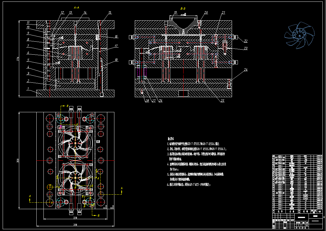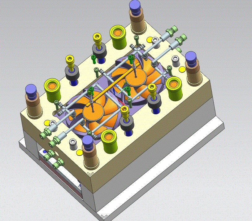 关键词:CPU散热风扇;注塑模;分型面;脱模机构;一模两腔