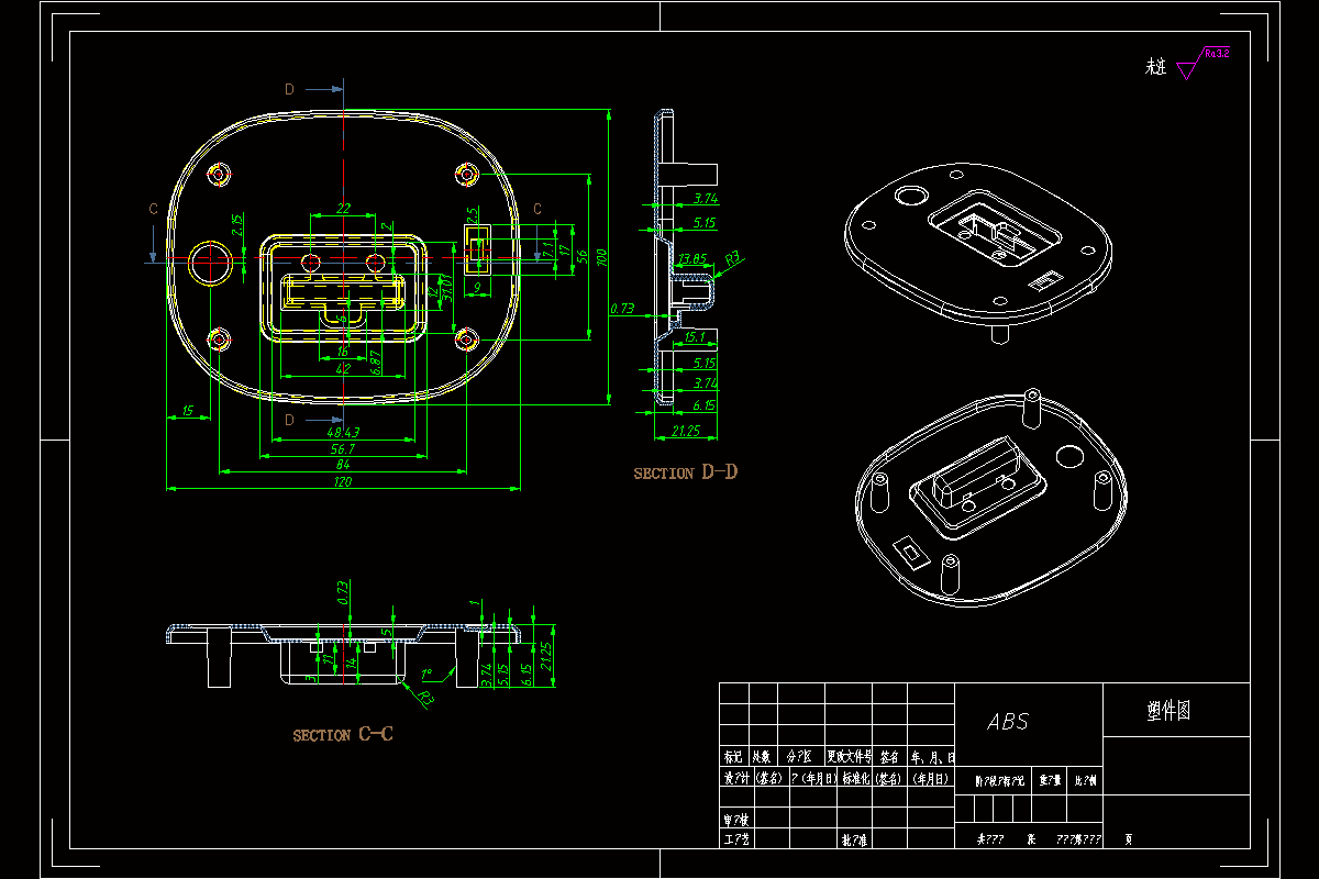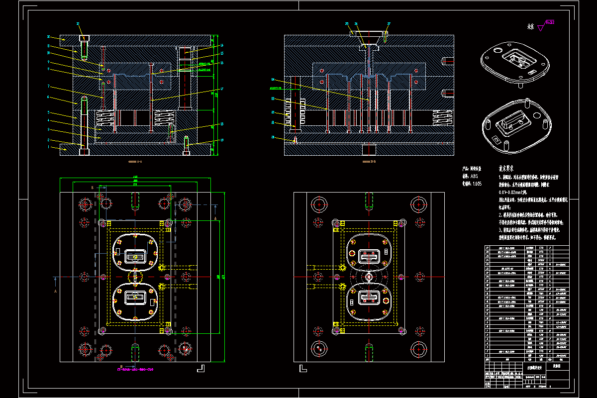 本次设计中,采用了计算机辅助设计软件,其中包括二维设计软件AutoCAD绘制模具的总装图与非标的零件工程图,采用了三维软件进行了塑件的建模与整体装配建模。