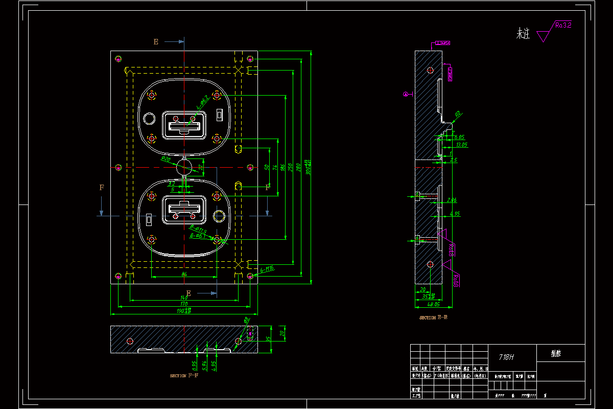 在完成全套的模具结构设计之后,对其生产所需的注塑机进行了选择与校核,其中校核项目包裹注塑量、注塑压力、锁模力、安装尺寸、顶出行程等内容。