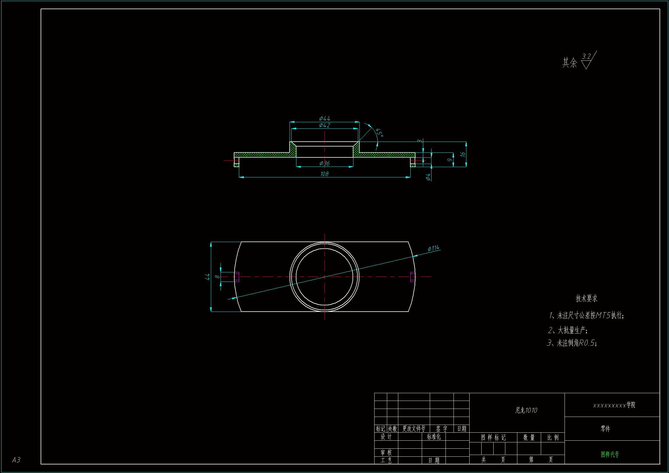 本课题以某尼龙外壳的模具设计为研究对象,设计一套尼龙外壳的模具。通过对给定零件的结构分析、成型方法的分析、加工工艺及效率的分析,选择塑料模具的结构形式及运动原理及机构组成。通过机构及零部件CAD设计与计算等过程,来培养学生设计、计算、制图及计算机应用能力,以提高分析与解决工程实际问题的能力。