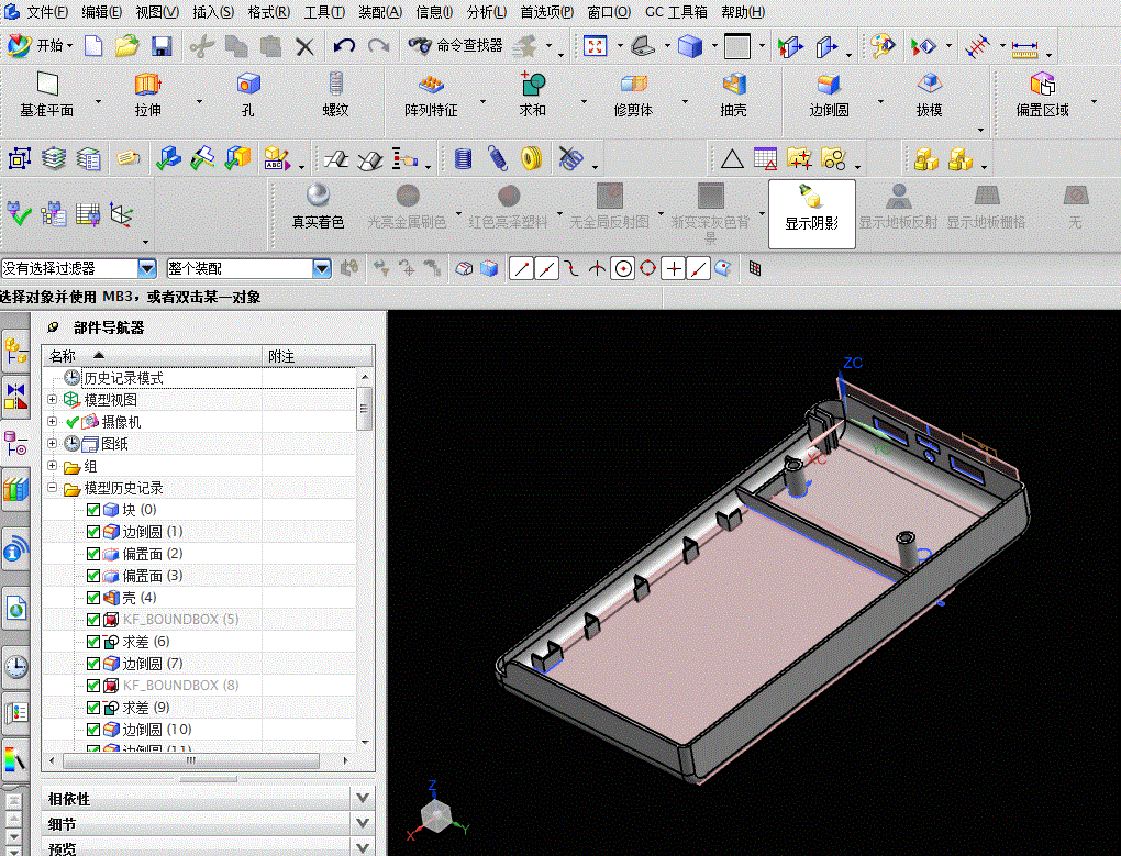 在本次毕业设计中,通过运用三维实体造型高端软件UG对“手机充电宝下盖”外形进行3D造型,同时也设计了其塑料注塑模的3D模型;还根据所设计的模具尺寸选择安装了相应的模架,最终生成了直观的结构设计图;此外还利用CAD绘制了模具装配图以及各种成型零件图。