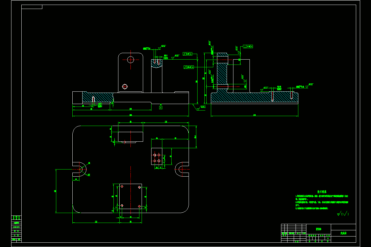 本设计是通过分析题目给的零件机构形式及加工形式,对加工的过程进行合理的路线设计和流程设计,然后再按要求设计一套专用夹具。在进行设计的时候大多的内容会包含机械加工能力、专用夹具设计、切削用量设计尺寸的公差与装配等知识点。I倒挡拨叉零件的工艺规程设计就包括了零件加工过程设计、加工过程工艺参数技术以及零件专用夹具的设计这几个方向。最开始就要先分析零件特征,然后设计一套加工规程来生产零件,根据零件尺寸特点设计毛坯结构,进行加工标准分析,确定工艺加工路线。再后来对加工的每个工序的参数和尺寸进行计算,确定每个工序所用的设备及设备的参数设定。最后选择一道工序进行专用夹具设计,对夹具的整体部件进行设计,选择定位和夹紧的元件,设计导向装置和导向元件,同时还要考虑到设计的夹具怎么样与机床安装到一起。对夹具开始设计的时候还要分析零件完成定位时的误差大小,要进行计算和调整,对设计的夹具进行不足之处分析和整齐程度,再以后再设计相关夹具的时候记得改正。