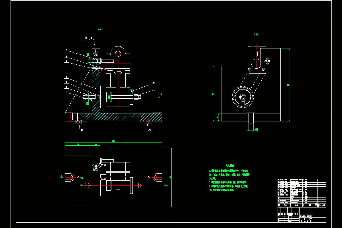 本次设计选取支架零件为被加工件,主要任务有加工工艺规程以及专用夹具设计。加工工艺规程设计前分析了零件的材质,结构以及加工要求等。确定了生产和制造方式,设计了加工工艺路线,计算切削用量,填写工序卡等。本次专用夹具设计铣5槽,适用机床卧式铣床X62,铣刀为三面刃铣刀。对其定位和夹紧方案进行设计,选择定位和夹紧元件等。最后,完成CAD图形绘制及说明书的撰写等。