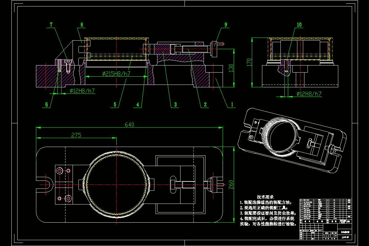 最后,完成夹具装配的3D实体建模,装配图以及所有非标零件图的绘制等。