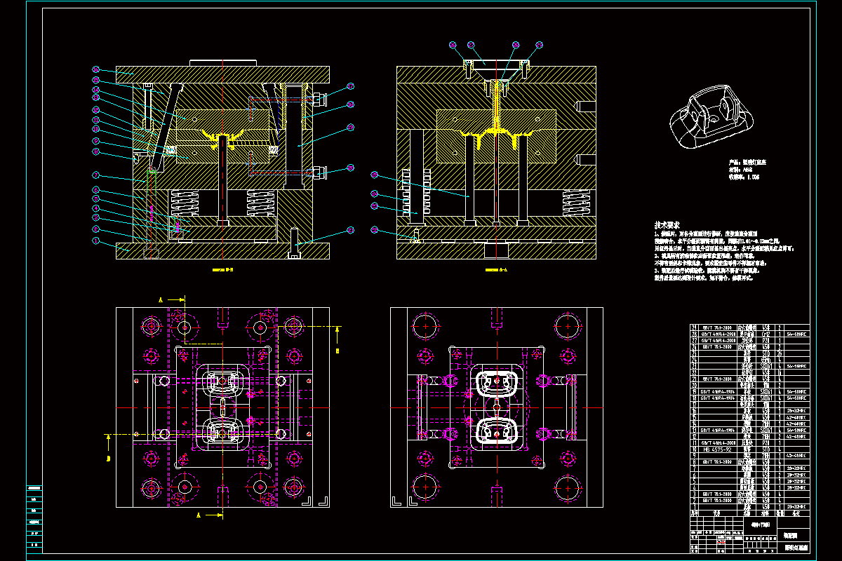 模具的特点是:产品需要透光性好。此外,还对工作零件和注射机有关参数进行了必要的校核计算。