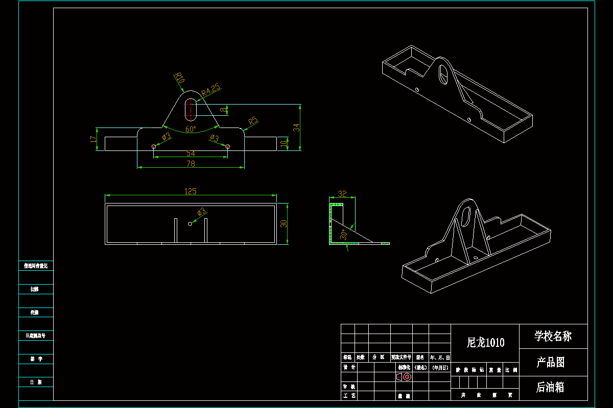 关键词:后油箱挂板;注射机;侧浇口;冷却系统;注塑模具