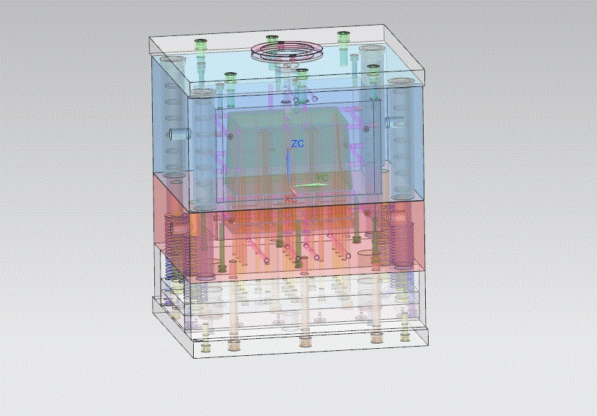 本设计的模具设计对象为塑料水箱,前期对于设计对象进行了相关的测量,数据的记录等;中期主要是使用UG三维设计软件根据前期测量的数据建立立体模型,并在塑件模型的基础上利用UG制造内的模具型腔模块对塑料水箱作出相应的注塑模模具设计,包括有塑件元件、滑块分型面、主分型面、浇口等,并且加入相应的模架、浇口、流道等;后期则是以之前作出的成果为基础使用CAD软件绘制出相应的二维图,也就是工程图,更加清晰的显示出塑件的结构以及模具的机构。