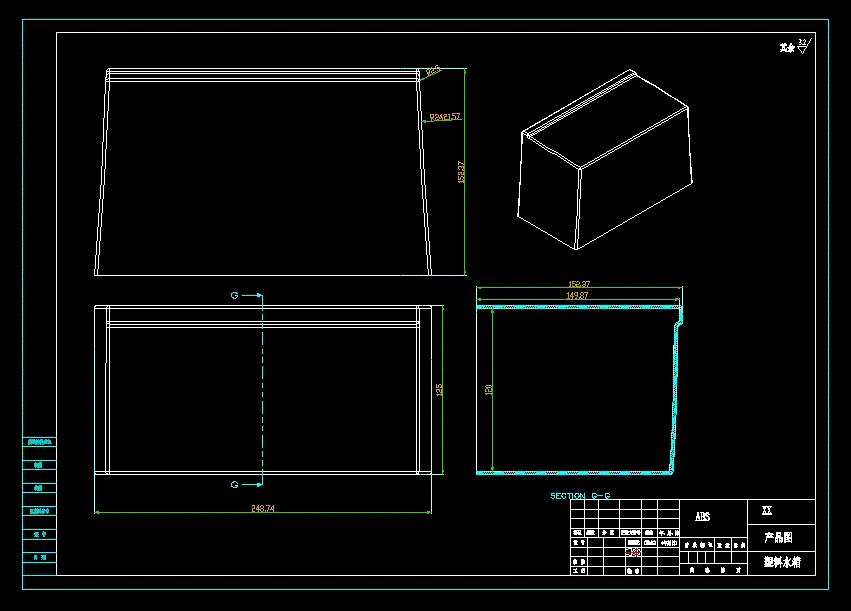 塑料制品有很多种成型的方法,本设计使用的是最常使用的注塑方式——注射成型,进行塑料水箱注塑模模具设计。