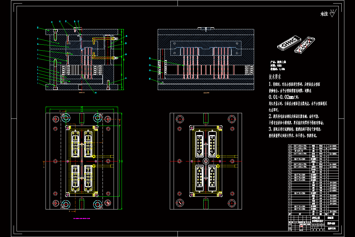 关键词:插座上盖;一模四腔;侧浇口;注射机;冷却系统;注塑模具