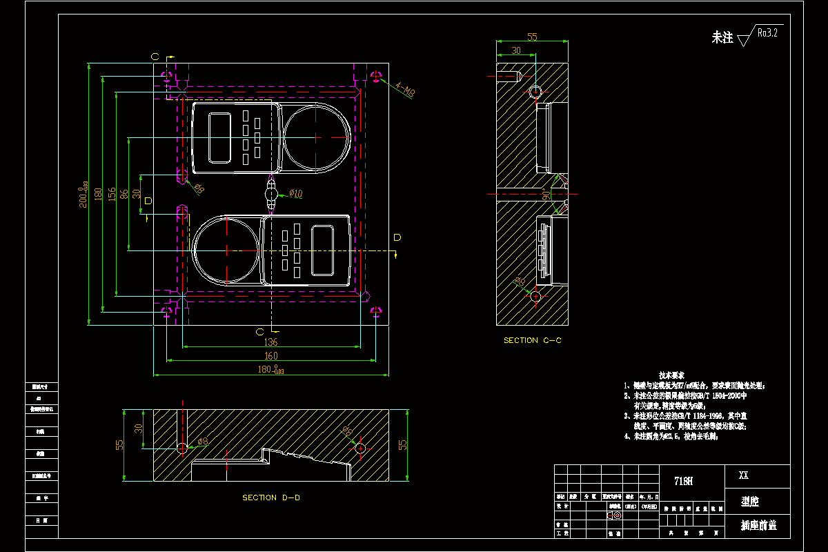 关键字:智能插座前盖;一模两腔;注射机;海天HTF300XB;冷却系统;注塑模具