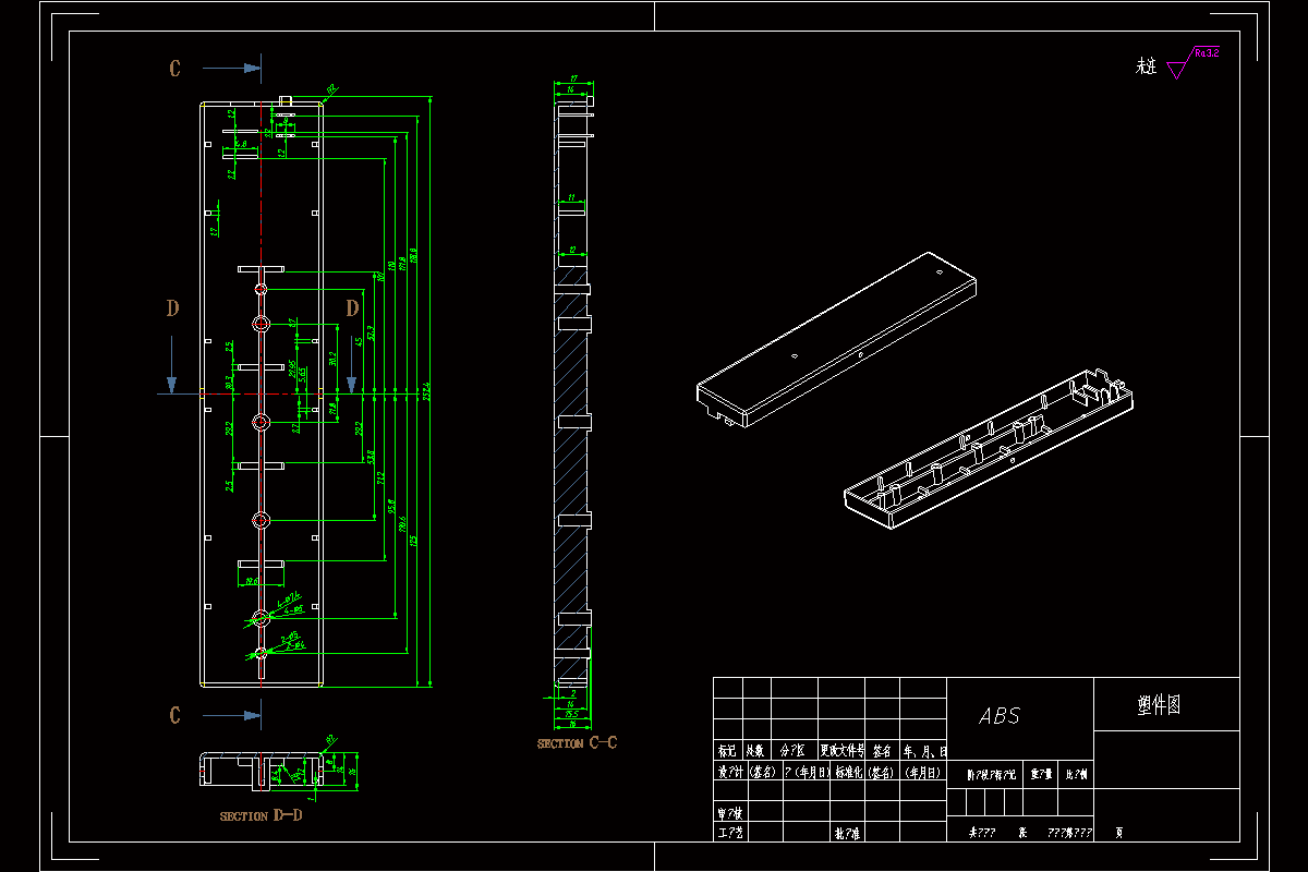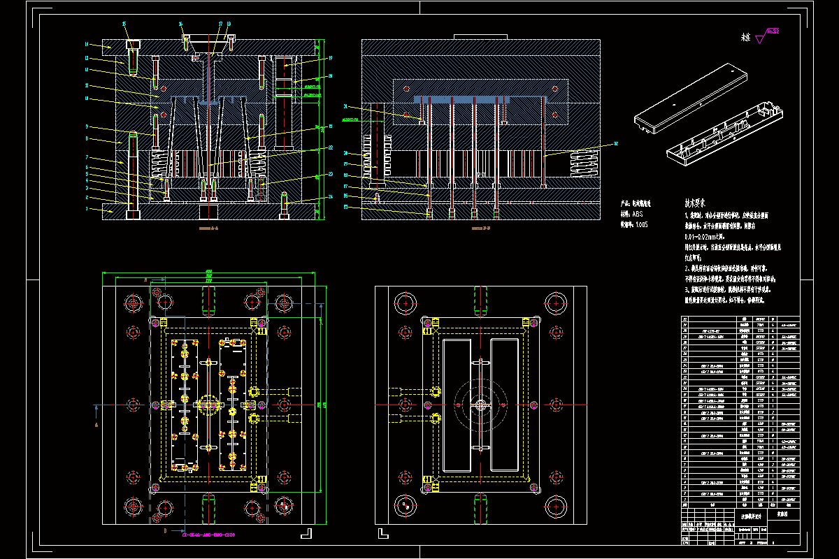 本次设计中,采用了计算机辅助设计软件,其中包括二维设计软件AutoCAD绘制模具的总装图与非标的零件工程图,采用了三维软件进行了塑件的建模与整体装配建模。