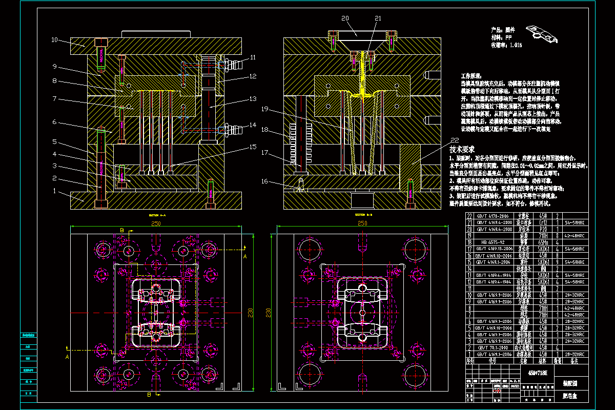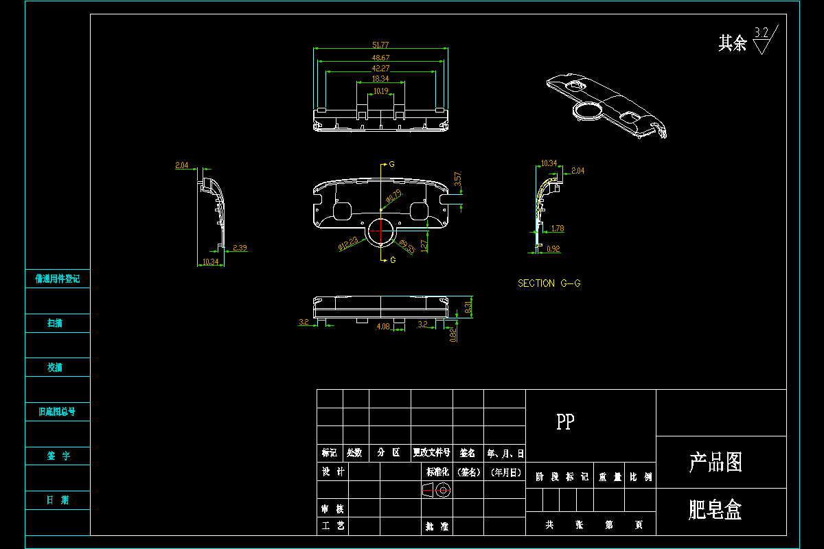 关键词:肥皂盒;一模二腔;侧浇口进料;注射机;冷却系统;注塑模具