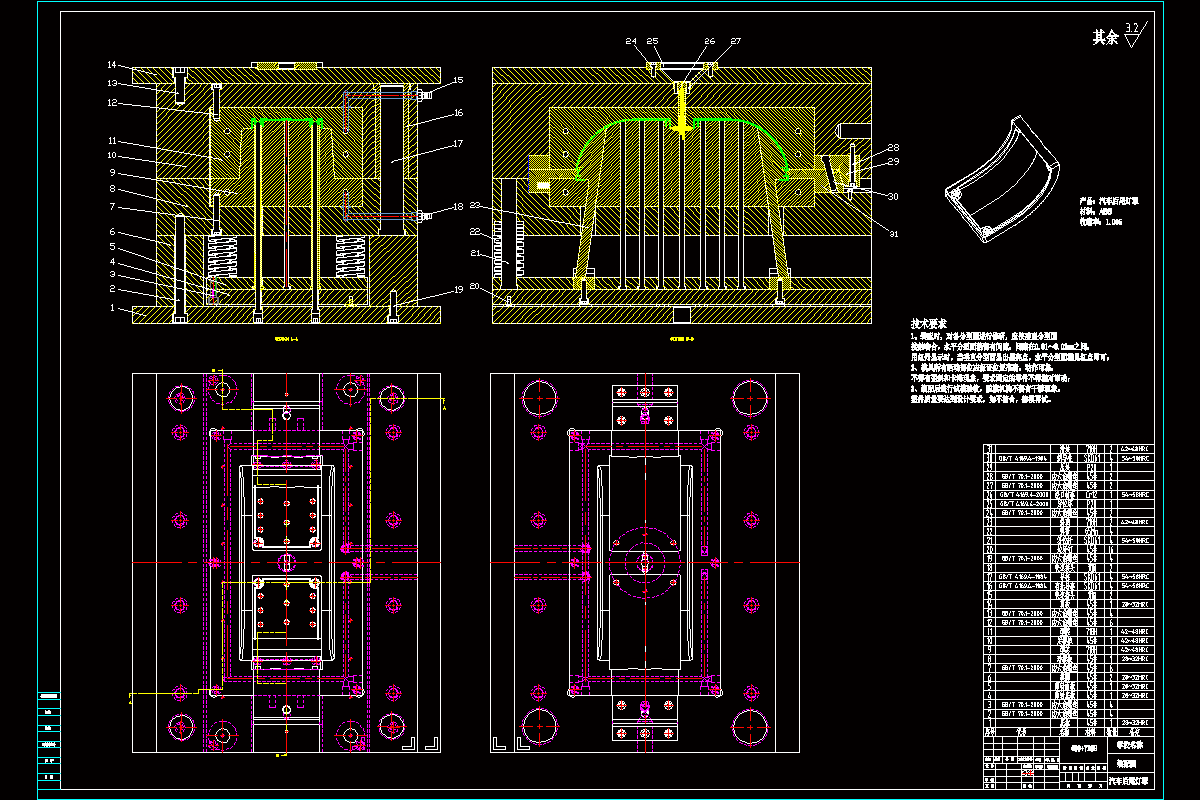 关键词:汽车后尾灯罩;注射机;一模两腔;侧浇口;冷却系统;注塑模具