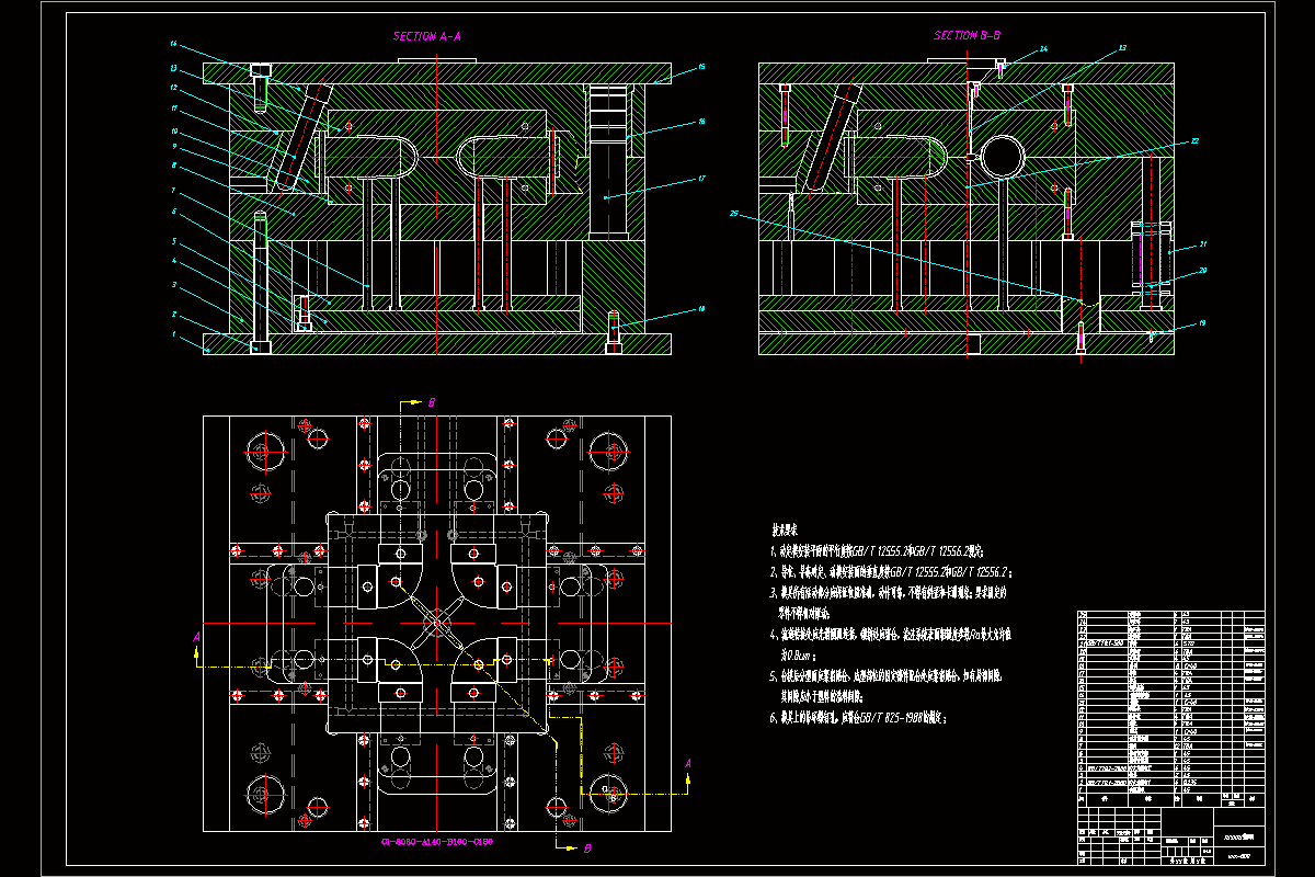 本文通过对塑件进行一系列相应的工艺分析及结构分析,从产品结构的工艺性、实用性、低成本等各方面考虑,并且依据具体的模具结构出发,首先设计该模具为一模四腔。根据直角弯管的实际形状选择了相对合理的分型面分型,采用了滑块与斜导柱装置进行侧抽芯,还设置了推杆进行直角弯管的脱模,并对模具的浇注系统、冷却系统、模具成型部分的结构、注射机的选择以及相关参数的校核都有详细的设计计算。此次设计还运用了AutoCAD、UG绘图软件完成了模具的二维图纸设计及三维建模。本次设计的模具虽然结构比较简单,但是工作可靠,并且在一定程度上可以达到直角弯管所要求的质量和加工工艺,本次设计的一些模具图在实际应用生产中也具有一定的指导意义。