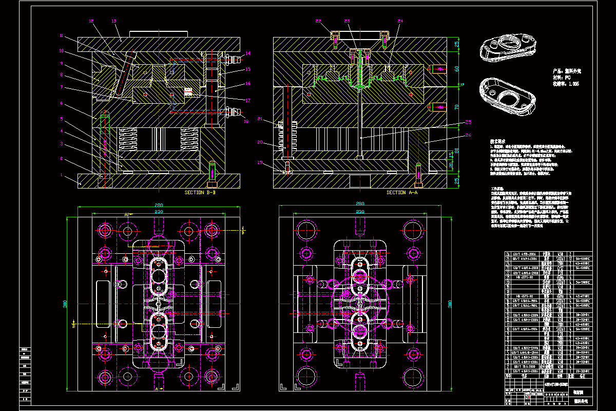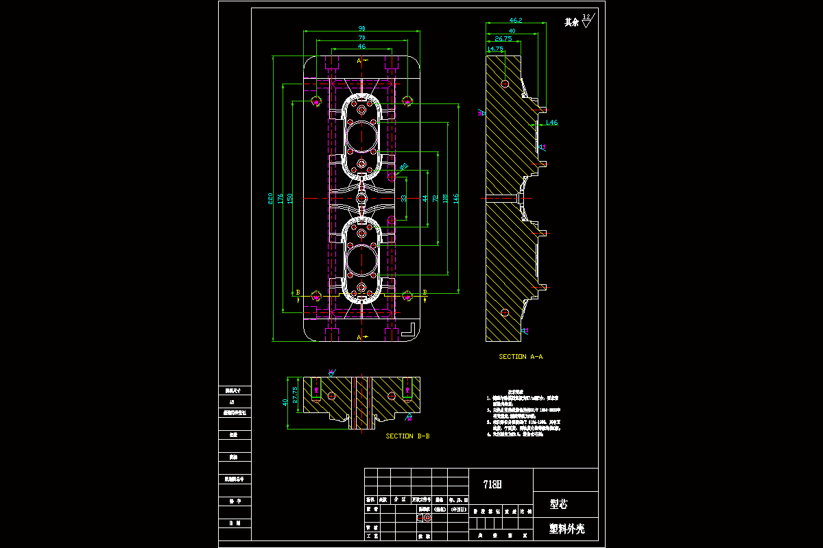 关键字:塑料外壳;一模两腔;注射机;海天HTF160X2B;冷却系统;注塑模具