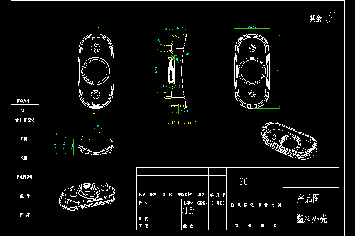 根据塑料外壳塑料制品的要求,了解塑件的用途,分析塑件的工艺性、尺寸精度等技术要求,考量塑件制件尺寸。本模具采用一模两腔,侧浇口进料,注射机采用海天HTF160X2B型号,设置冷却系统,产品由顶杆顶出,CAD和UG绘制二维总装图和零件图,选择模具合理的加工方法。附上说明书,系统地运用简要的文字,简明的示意图和和计算等分析塑件,从而作出合理的注塑模具设计。