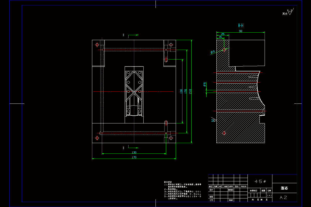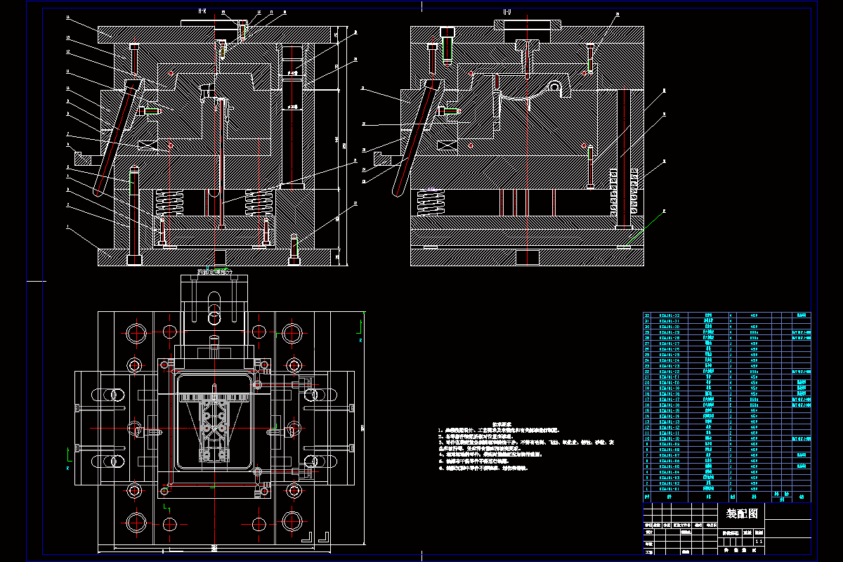 在设计中,为了更直白的表达模具内部的结构,里面附有模具结构图以及模具的局部图。