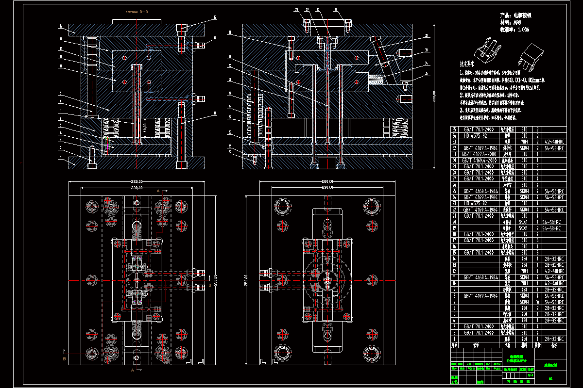 关键词:电源按钮;一模两腔;潜浇口;冷却系统;注塑模具