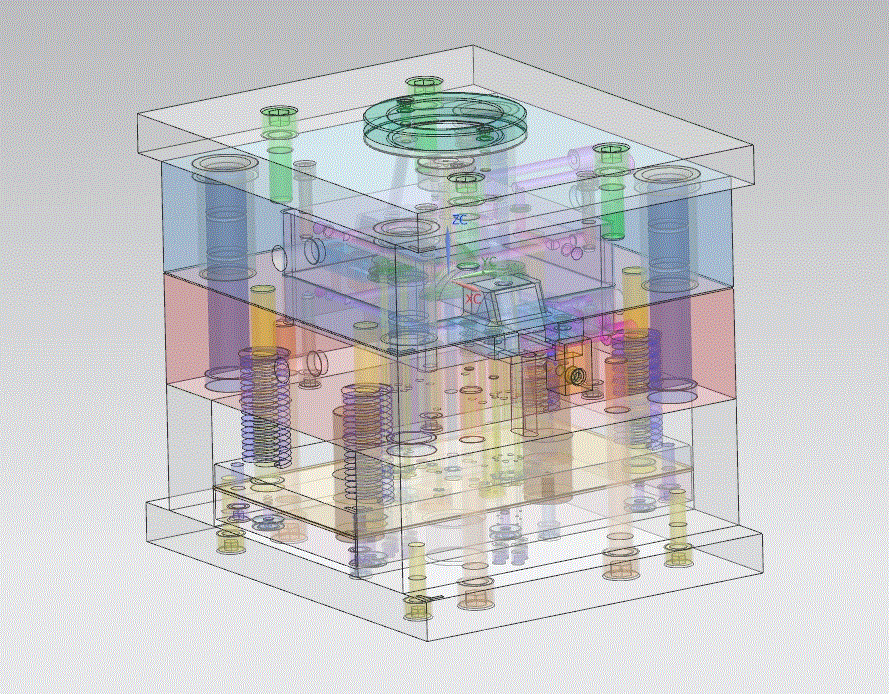 本次设计的是塑料挂钩的注塑模具。所用材料是当前应用较为广泛的材料ABS。在设计中,分析塑件的工艺性。模具结构可采用一模两腔,侧浇口进料,注射机采用HTF 80XA型号,并对其相关的数据进行校核。选用斜导柱滑块抽芯机构。首先根据三维软件设计出分型面,进而设计出型腔、型芯,通过各种手册选择标准模架的绘制,并且进行浇注系统、脱模机构、冷却系统等模具重要结构的设计。最后对设计过程中的相关零部件进行了计算和校核,在无误的基础上进行了模具总装,并利用CAD软件绘制出总装及各主要零件的二维工程图,设计出一套塑料注塑模具