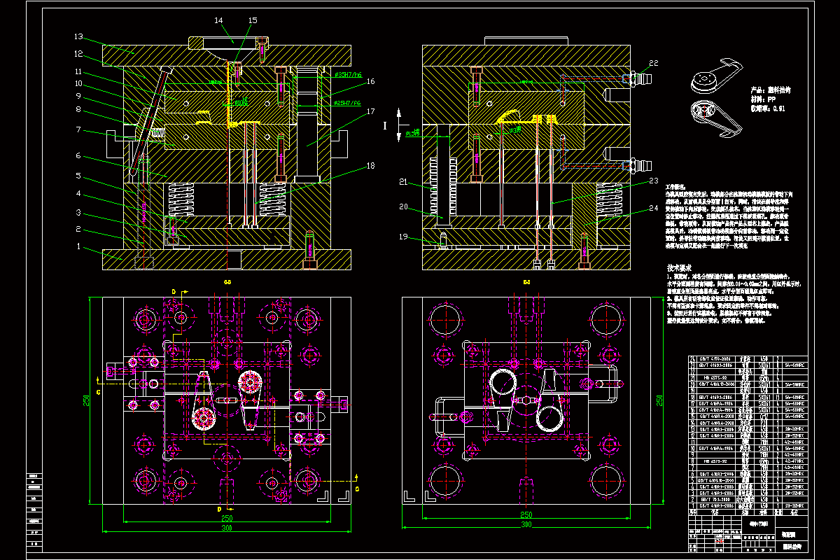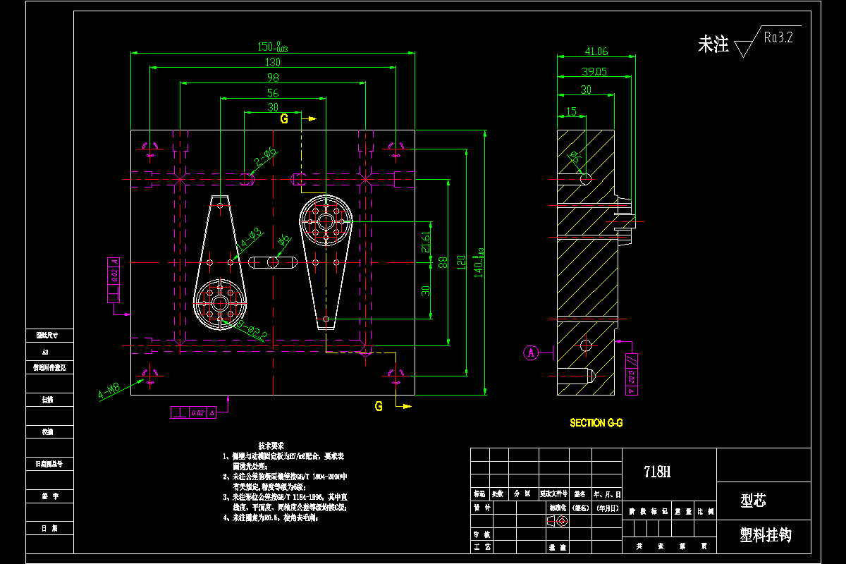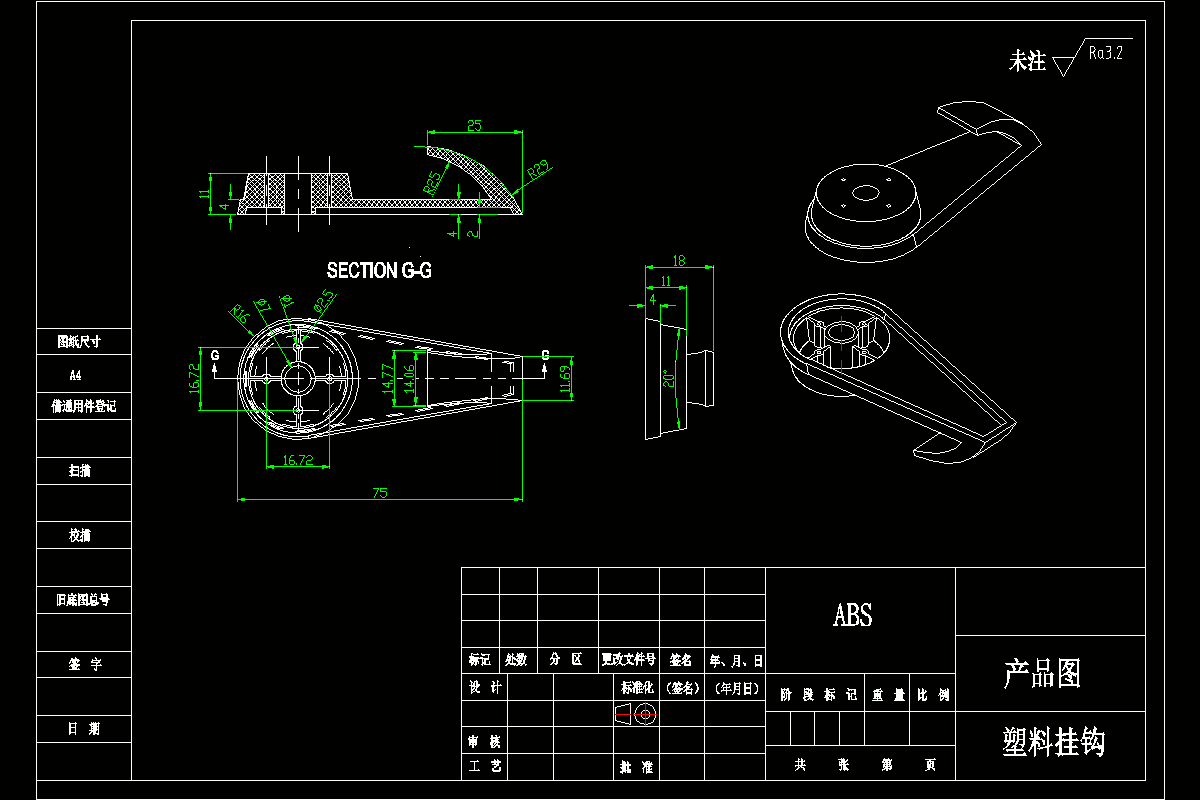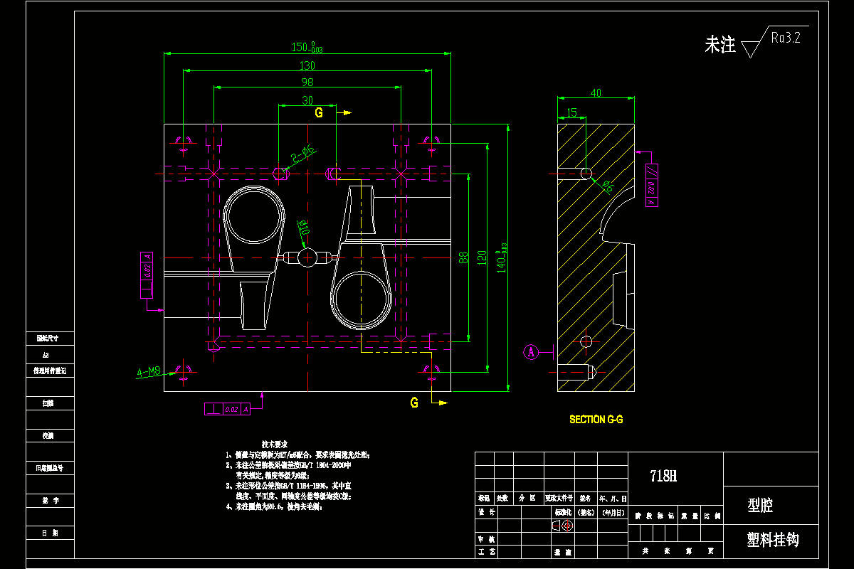 关键词:塑料挂钩;一模两腔;侧浇口;冷却系统;注塑模具