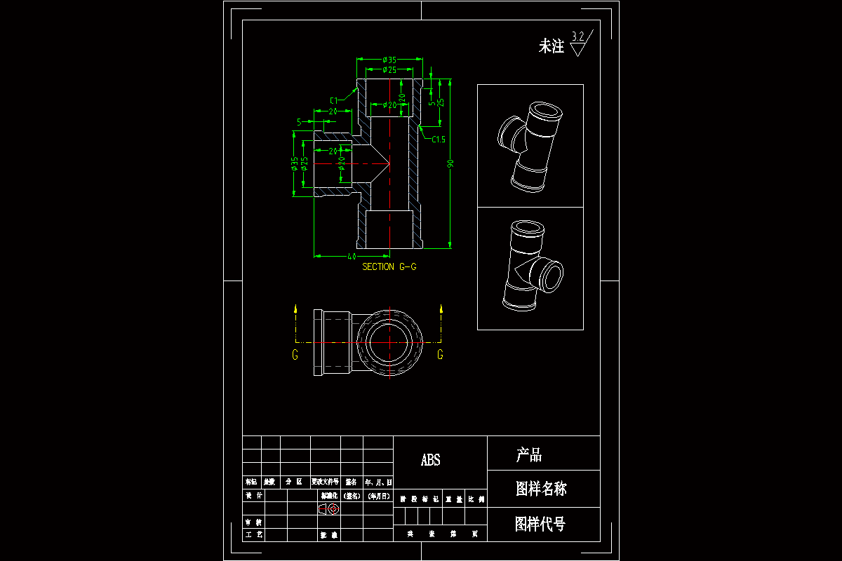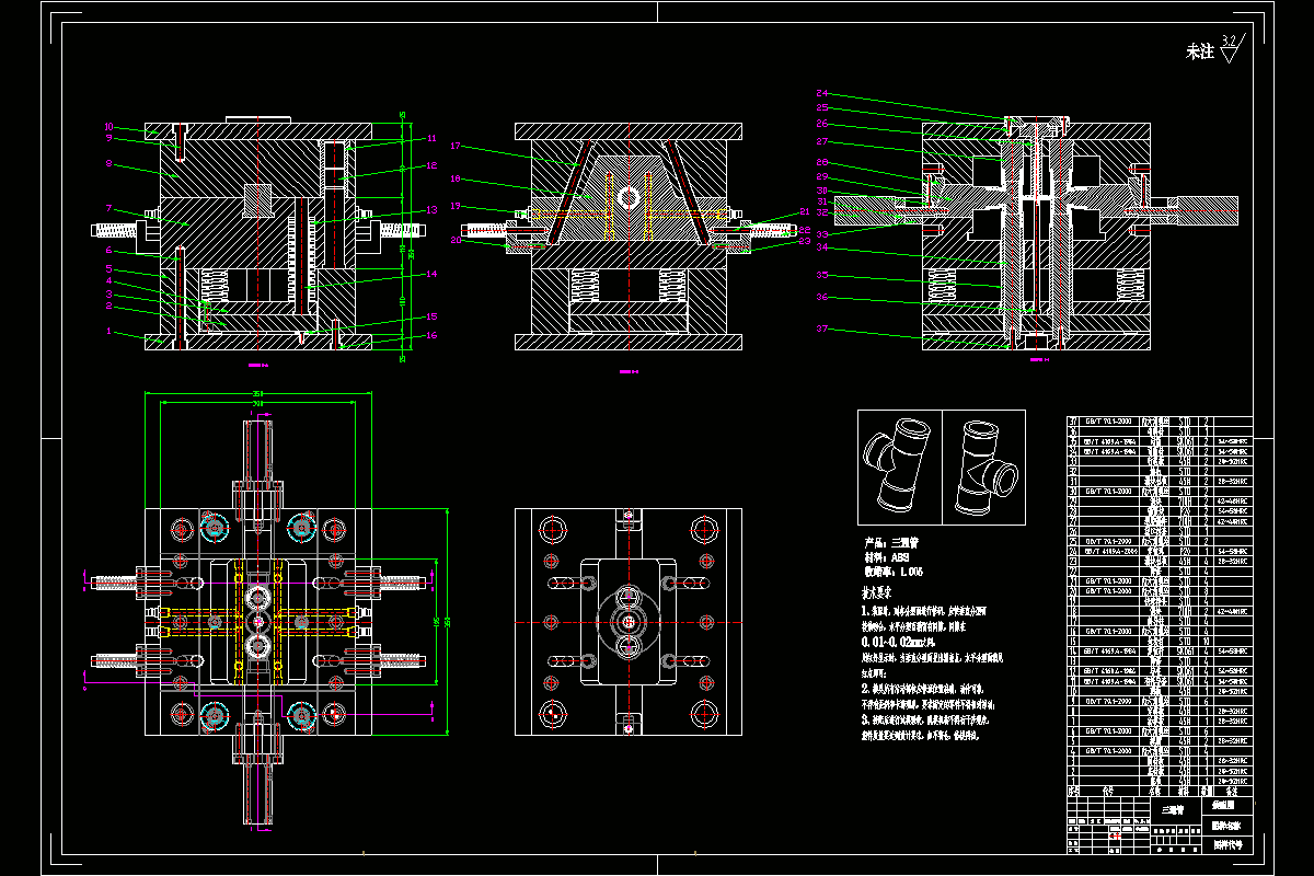关键字:三通管;一模二腔;侧浇口;注射机;注塑模具