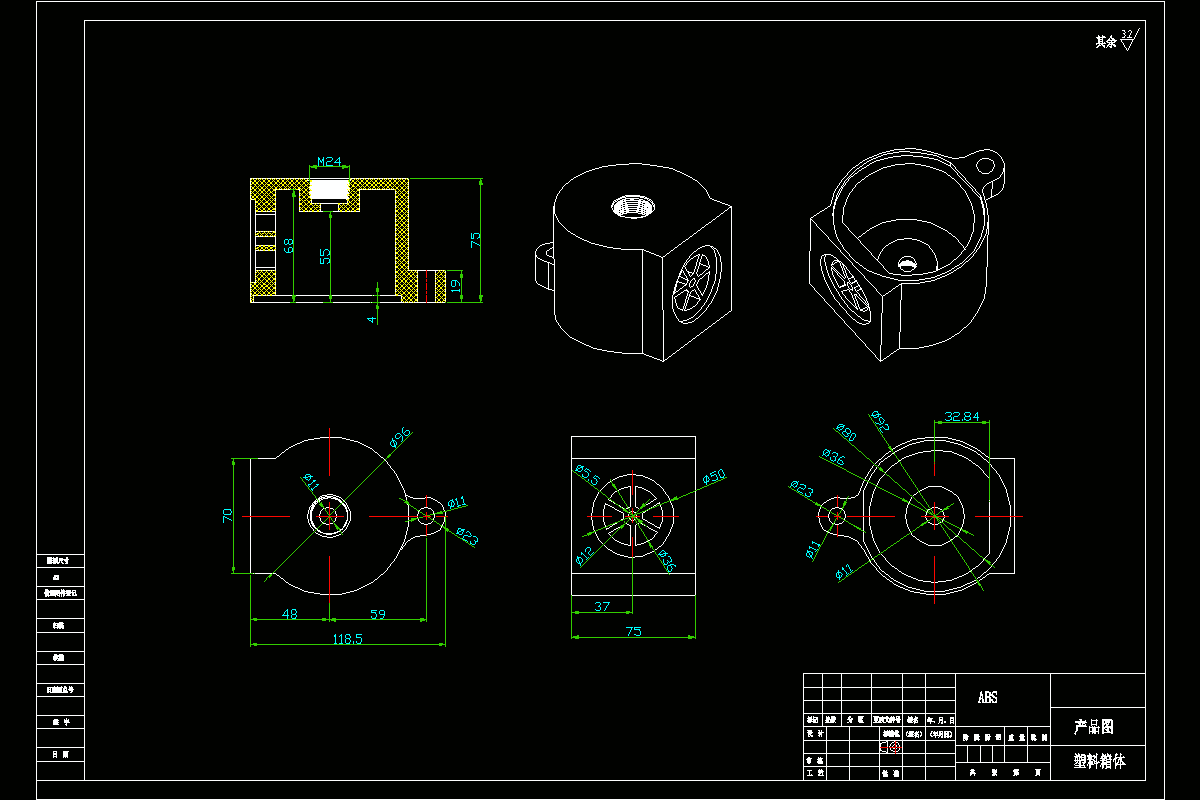 关键词:箱体;一模二腔;侧浇口;注射机;HTF 200XB;冷却系统;注塑模具
