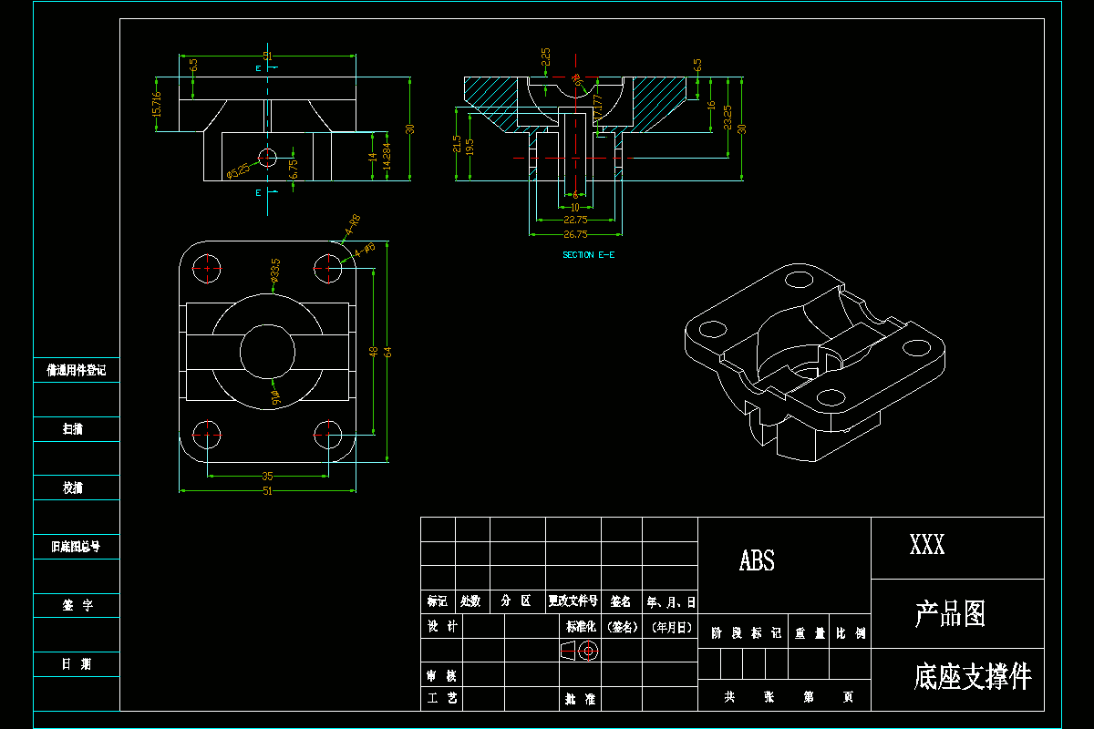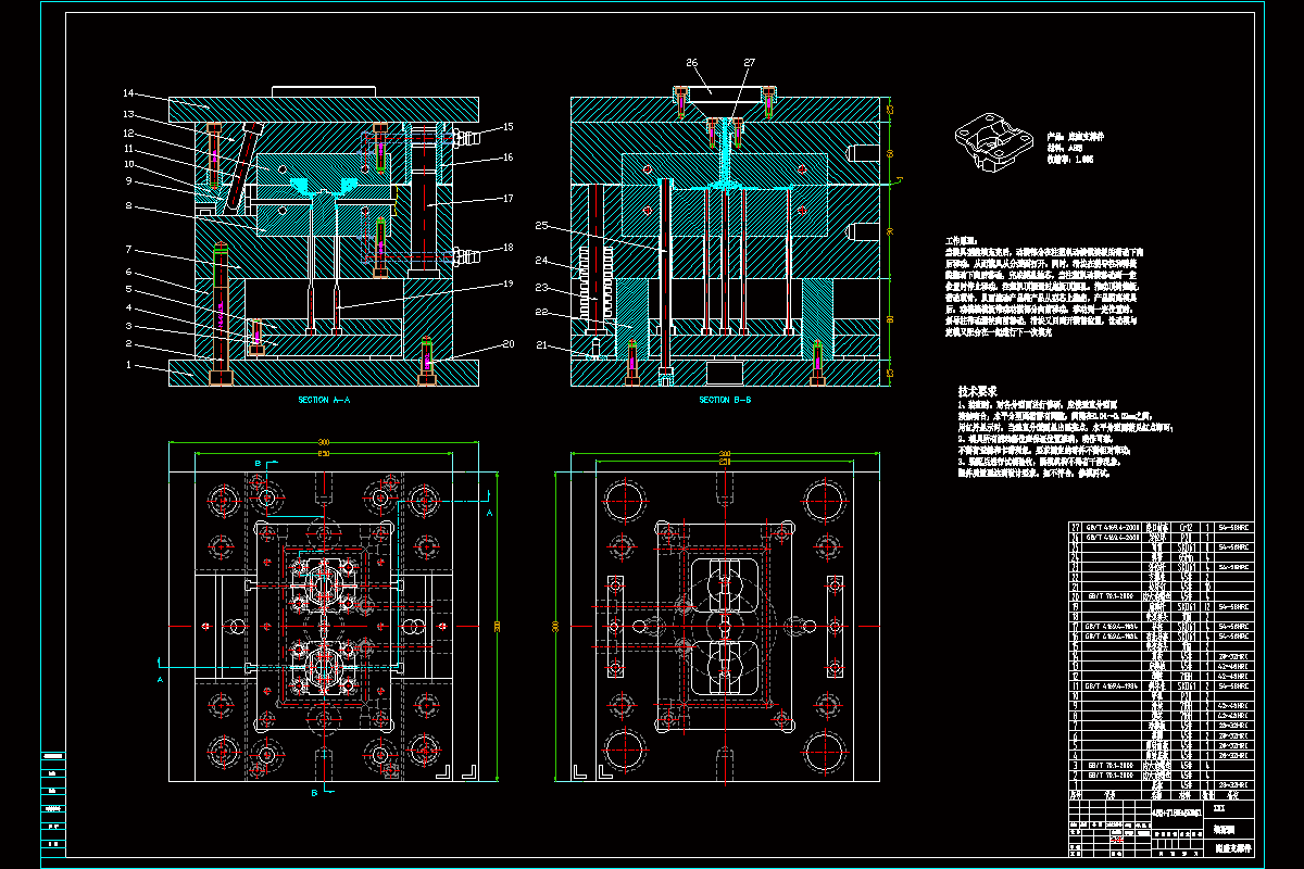 关键词:底座支撑件;一模两腔;侧浇口;注射机,冷却系统,注塑模具