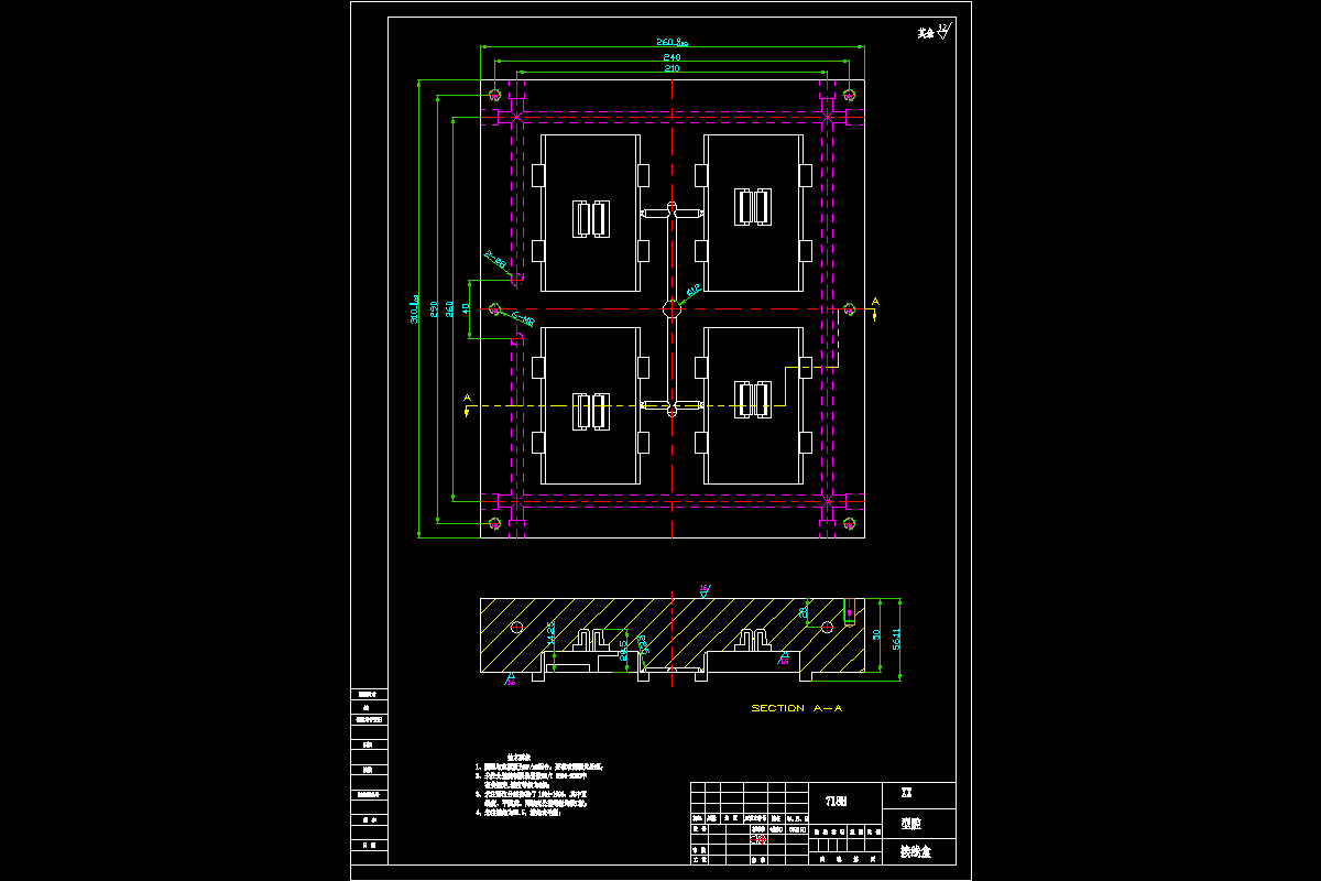 关键词:汽车车灯接线盒;冷却系统;注塑机;注塑模;一模四腔