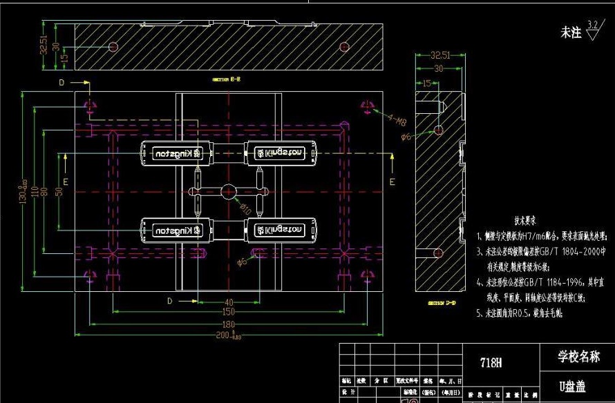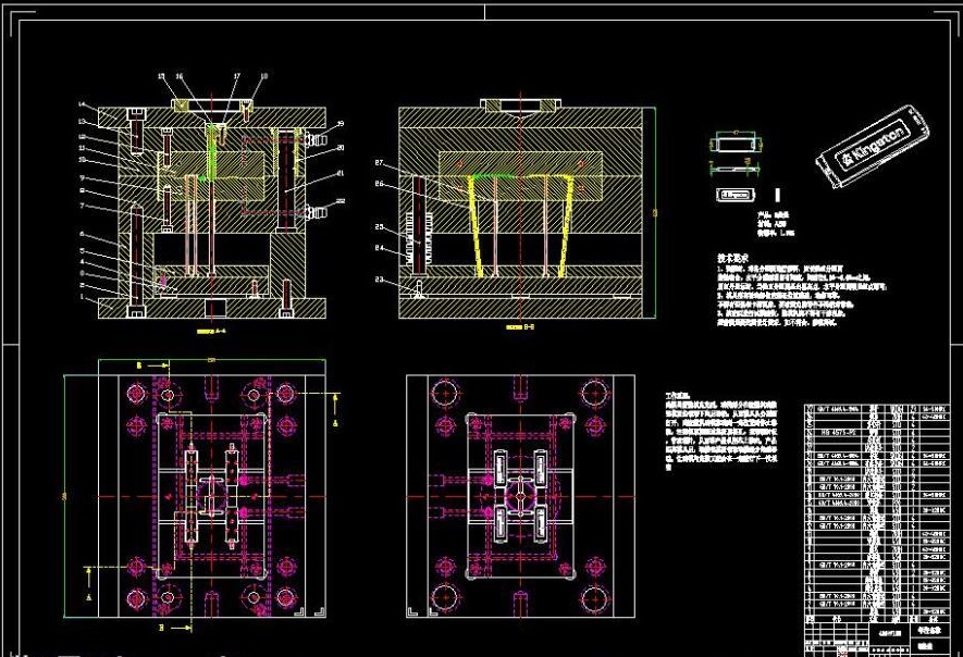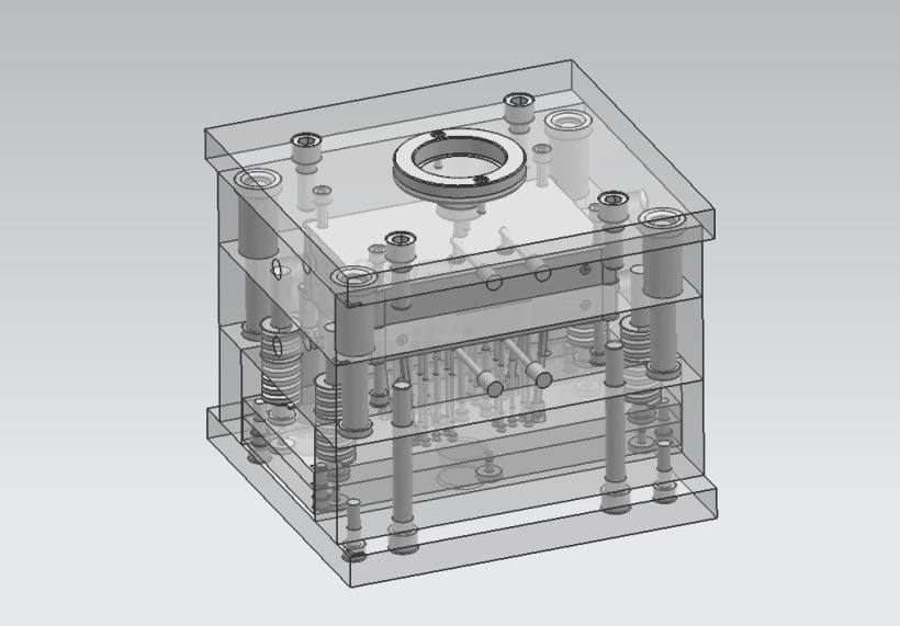 权衡了塑件的外形尺寸。本次的模具采用一个模具四个成型腔,进料口开设在侧面,注射机的型号采用HTF80XB,并且还要具有冷却系统。拥有了合理的加工步骤,利用二维CAD和三维PROE绘制总的装配图和主要的零件图。