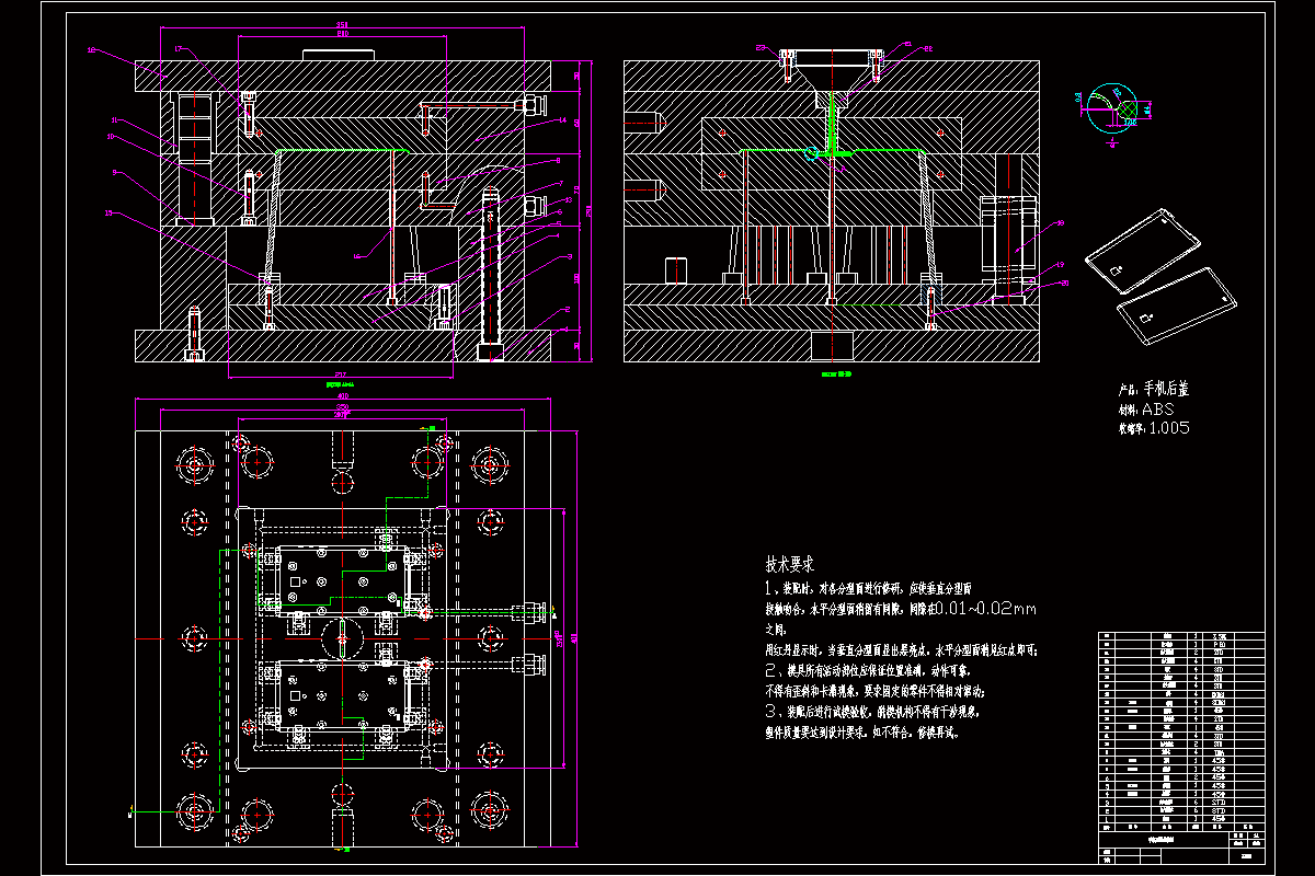 关键词:手机电池盖;注射模具;实体造型;浇注系统
