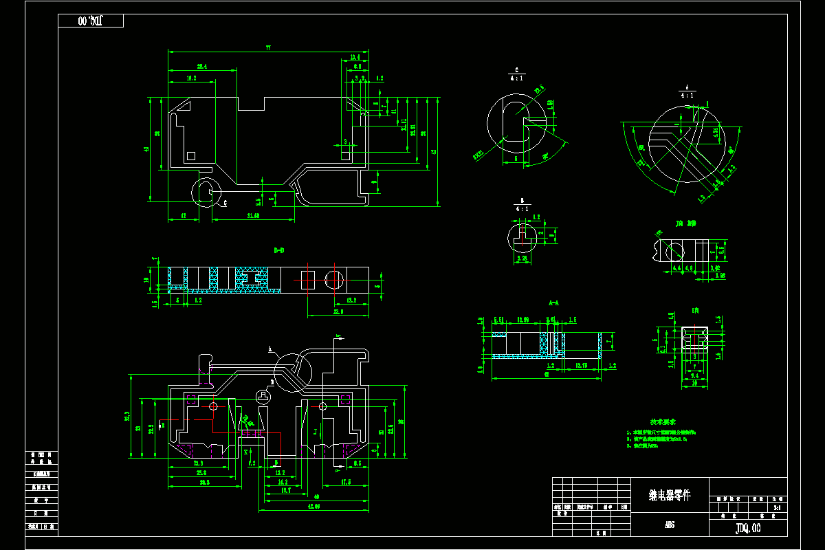 本设计为注射继电器模具设计,继电器模具设计中的零件形状较复杂,要保证制品的质量。首先,模具型腔和型芯的形状、尺寸、表面光洁度、分型面、进浇口和排气位置以及脱模方式等对制件的尺寸精度和形状精度以及制件的物理性能、机械性能、电性能、内应力大孝各向同性性、外观质量、表面光洁度、气泡、凹痕、烧焦、浇口形式等都有十分重要的影响。其次,在加工过程中,模具结构对操作难以程度影响很大。在大批量生产塑料制品时,应尽量减少开模、合模的过程和取制件过程中的手工劳动,为此,常采用自动开合模自动顶出机构,在全自动生产时还要保证塑件能自动从模具中脱落。最后用计算机绘制了所有模具的装配总图和部分模具零件的零件图,并编写了设计说明书。